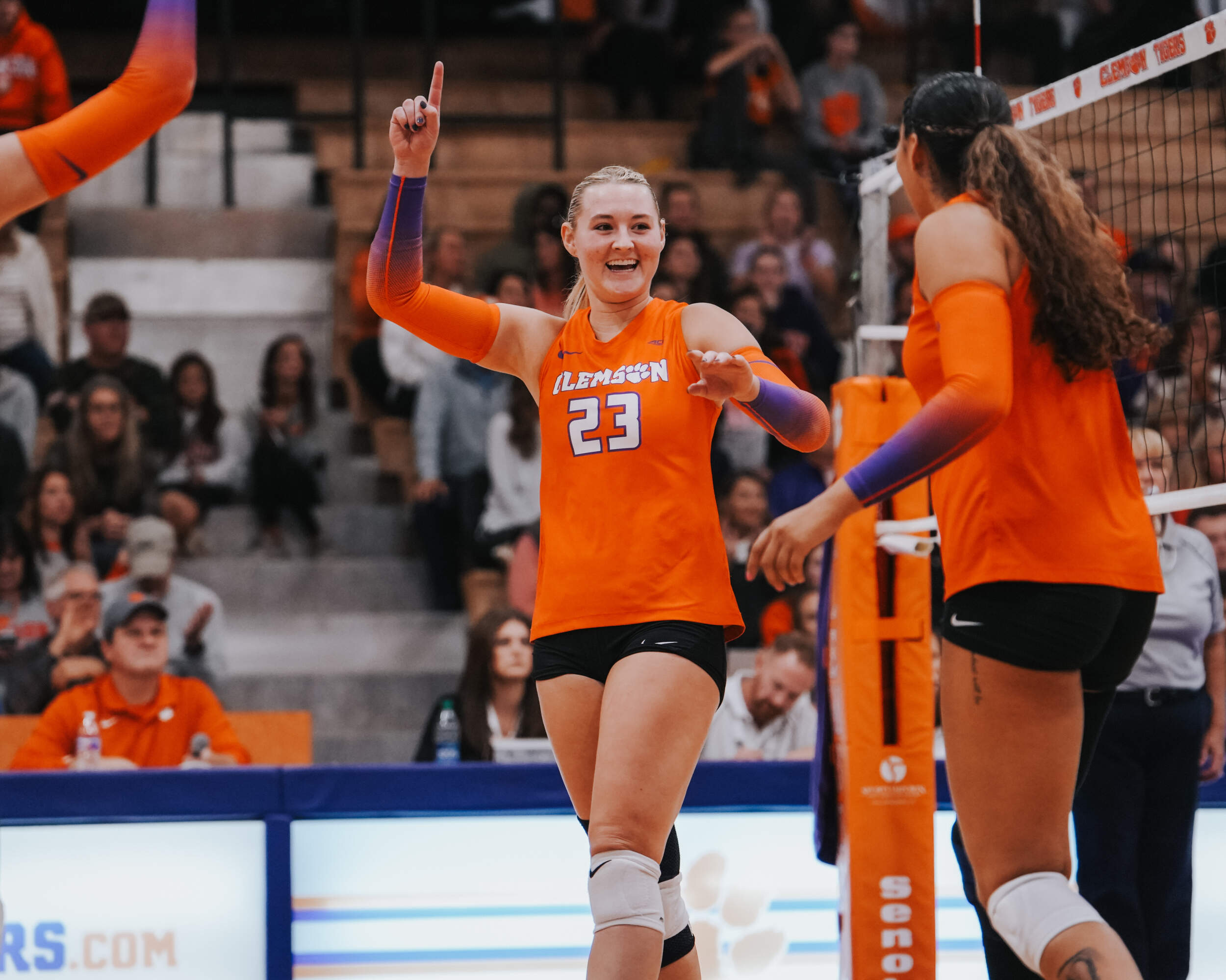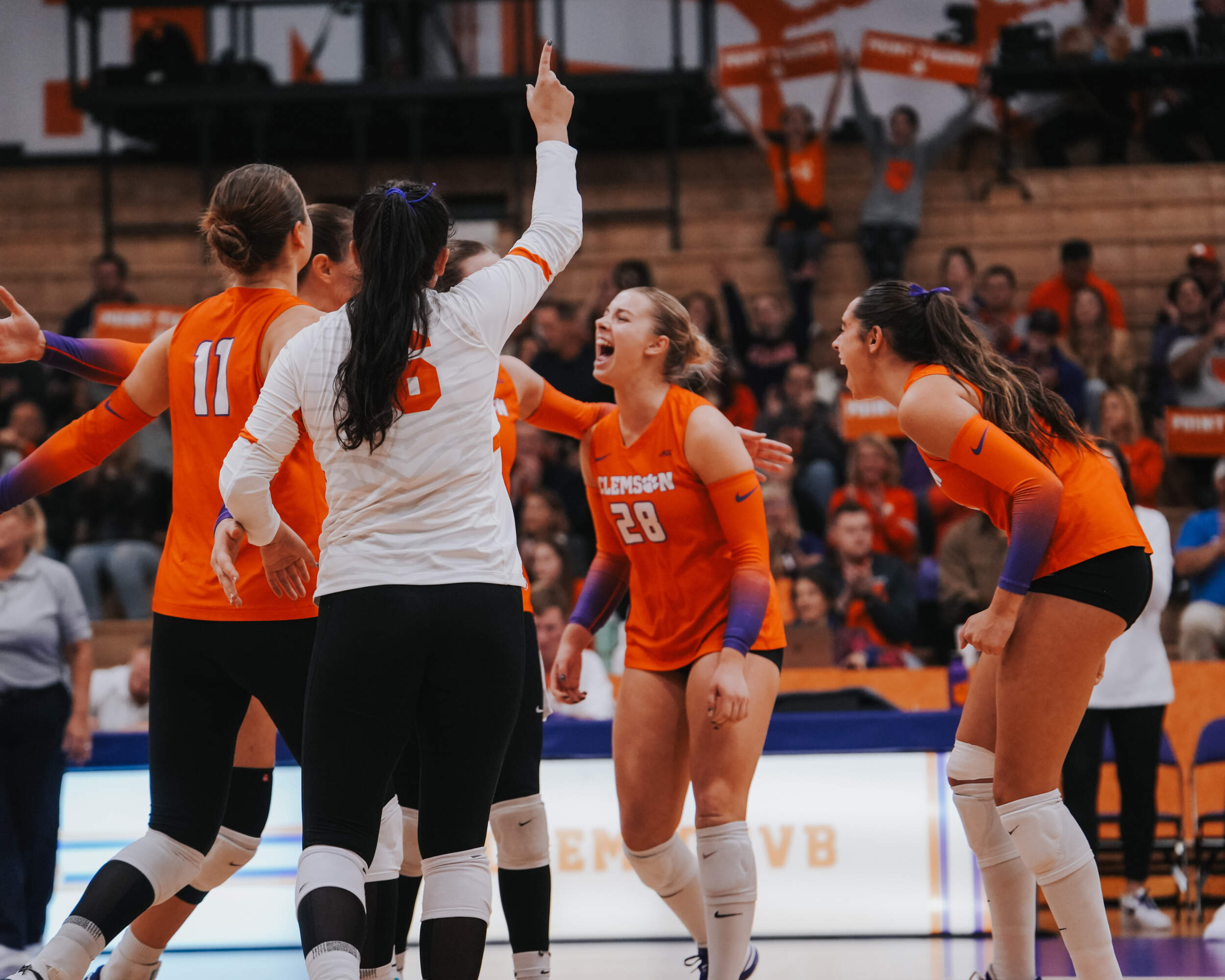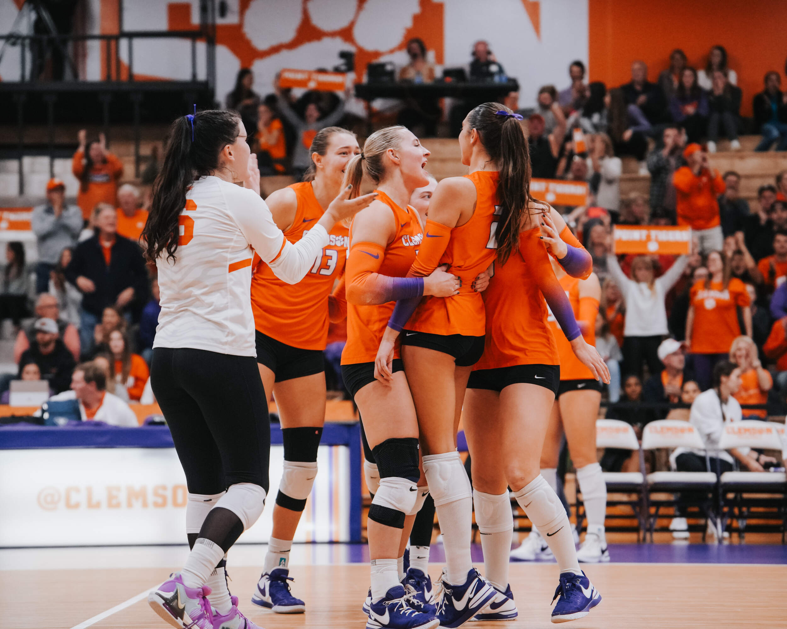 CLEMSON, S.C. – The Clemson Volleyball team captured a four-set victory against Notre Dame inside Jervey Gym on Friday evening. Clemson captured the 3-1 win (28-26, 25-17, 16-25, 25-20) in front of 1,242 fans, the third largest crowd in Jervey Gym this season, and improved to 15-10 (6-7 ACC) on the year. It also marks the first time Clemson has won two-consecutive matches against the Fighting Irish since Clemson won in 2013 and 2014.