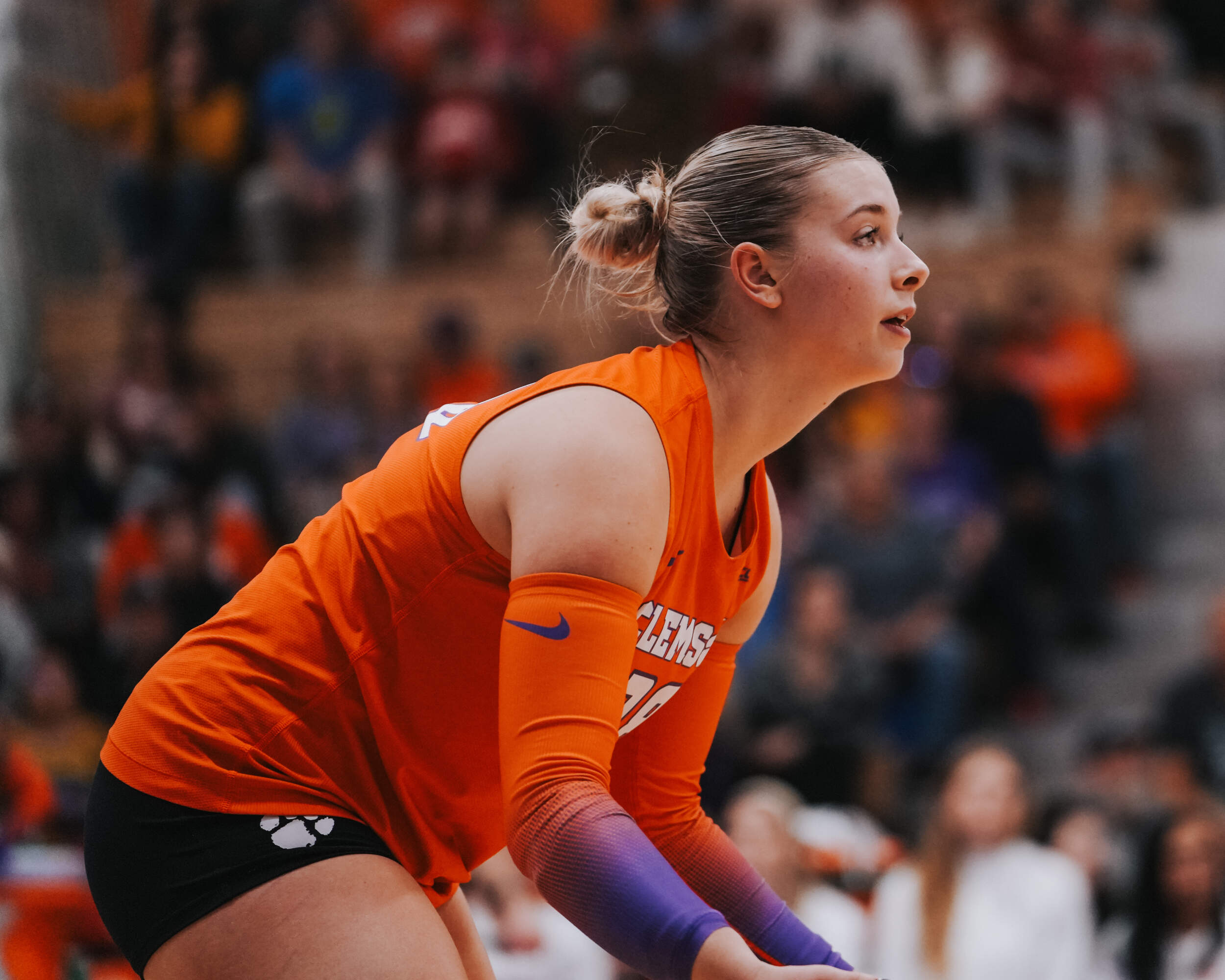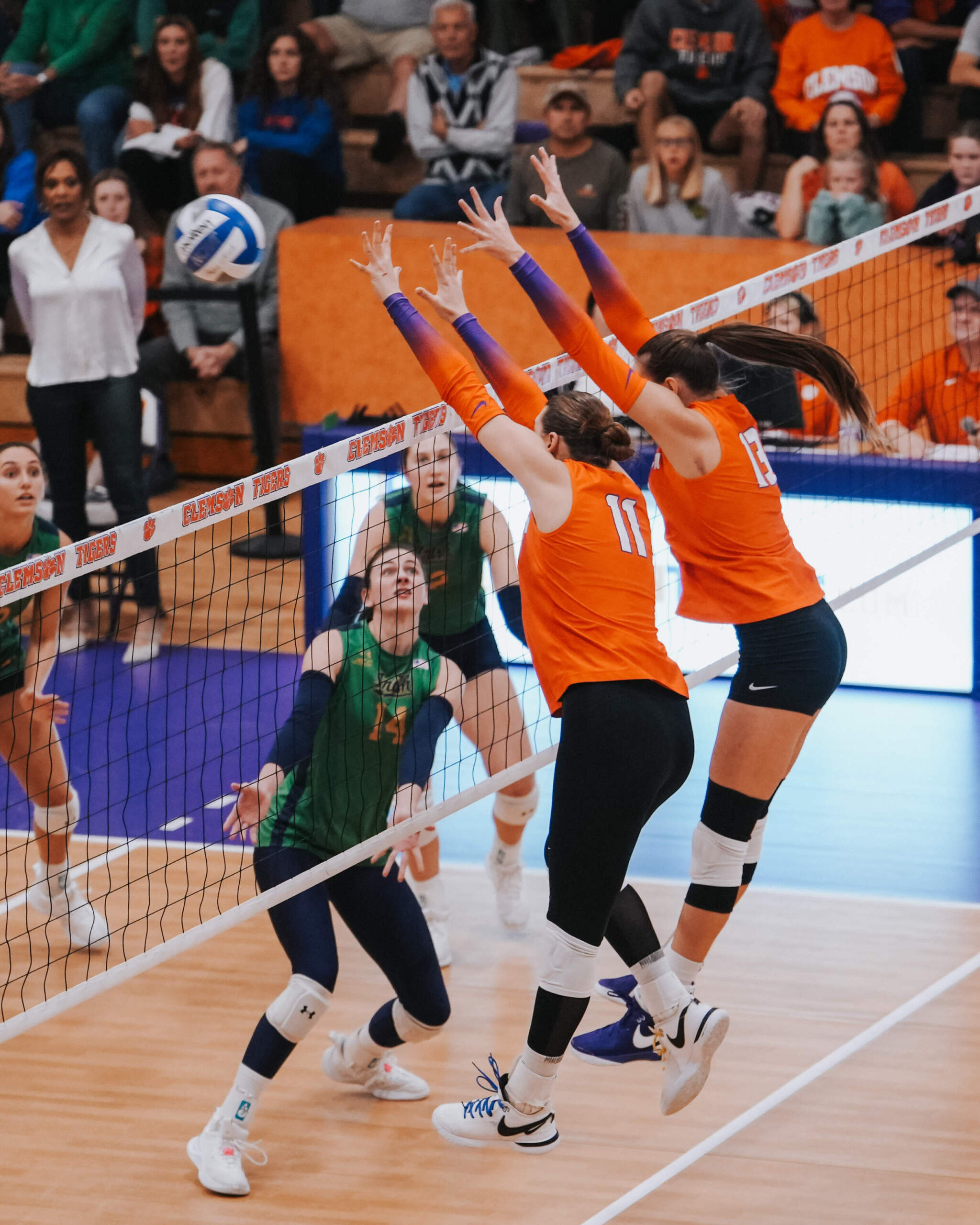 The second set was dominated by the Tigers, who opened the set on a 9-3 run. Notre Dame pulled within one to make it 11-10 in Clemson’s favor, but the Tigers continued to push the tempo and ended the set on an 8-4 run with kills coming from Powell, Wagner, McGrath and Slavik to take set two, 25-17. Notre Dame forced a fourth set after taking set three, 25-16. Kate Simington tallied Clemson’s lone block in the set with a solo block that attempted to spark the Tigers, but it wasn’t enough. The third set also marked the first set on the evening that Clemson didn’t have an ace in after finishing with three in the first and two in the second.