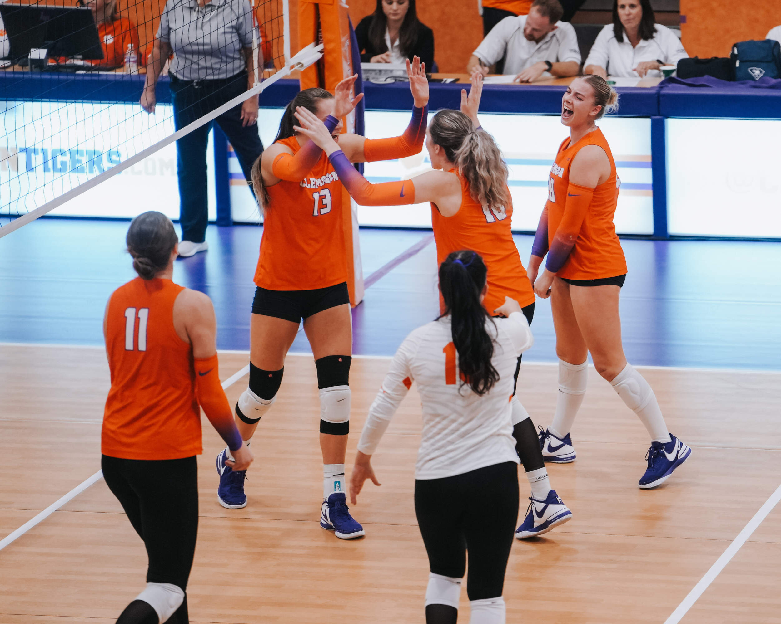 Powell led the team offensively with 17.5 points off 14 kills and four blocks (one solo, three assisted). Wagner added 13.5 points behind 10 kills and two blocks, and McGrath rounded out the Tigers with double-digit points, clocking 11. Slavik, Taylor and McKenna Gildon finished with 11 digs each, and Slavik tallied her 13th double-double with 37 assists as well.