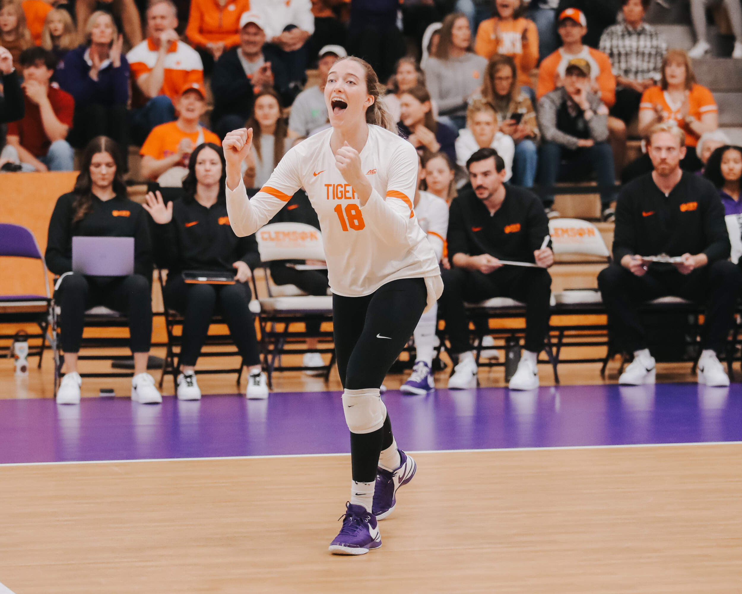 Today’s match marked the final match in the current Jervey Gym setup, as Clemson Athletics begins the process of renovating the gym that includes raising the roof, as well as a new locker room, lounge and meeting areas for the volleyball program, and major improvements to the gameday experience. In total, the renovation will reallocate 14,000 square feet of space. Learn more about the full project here.