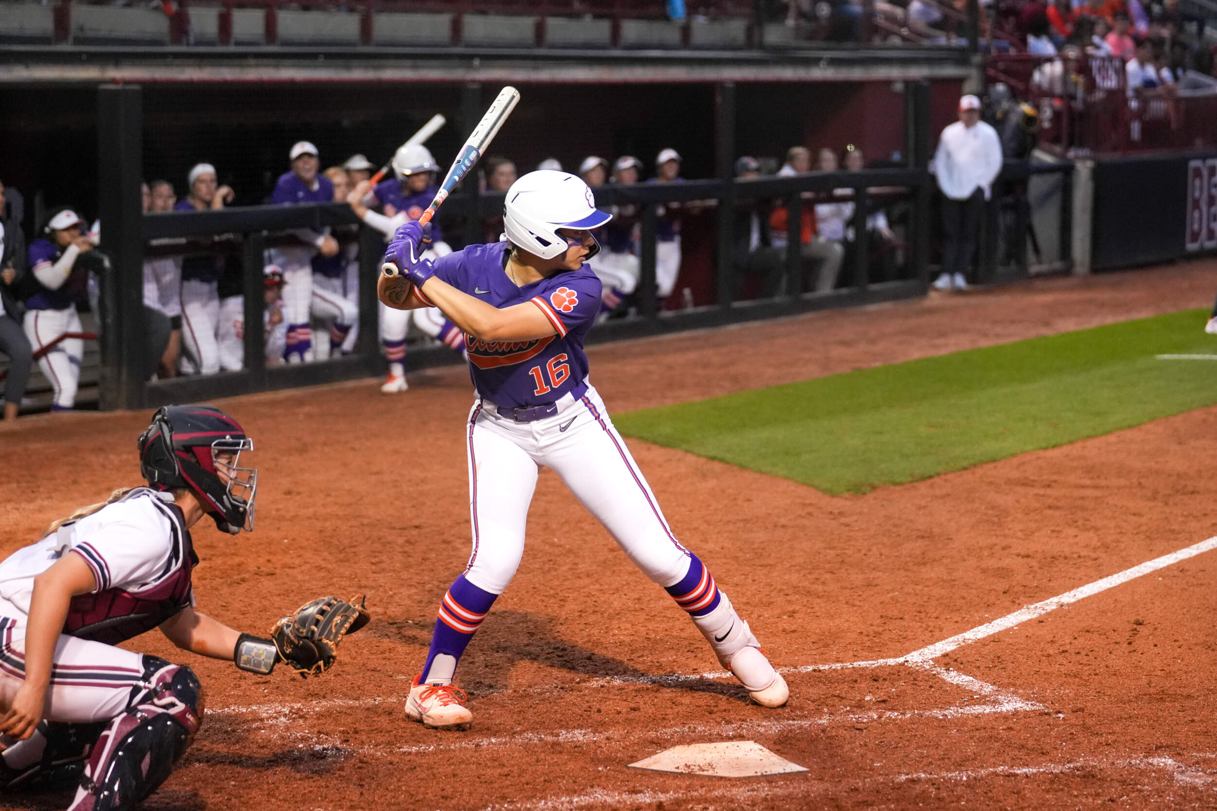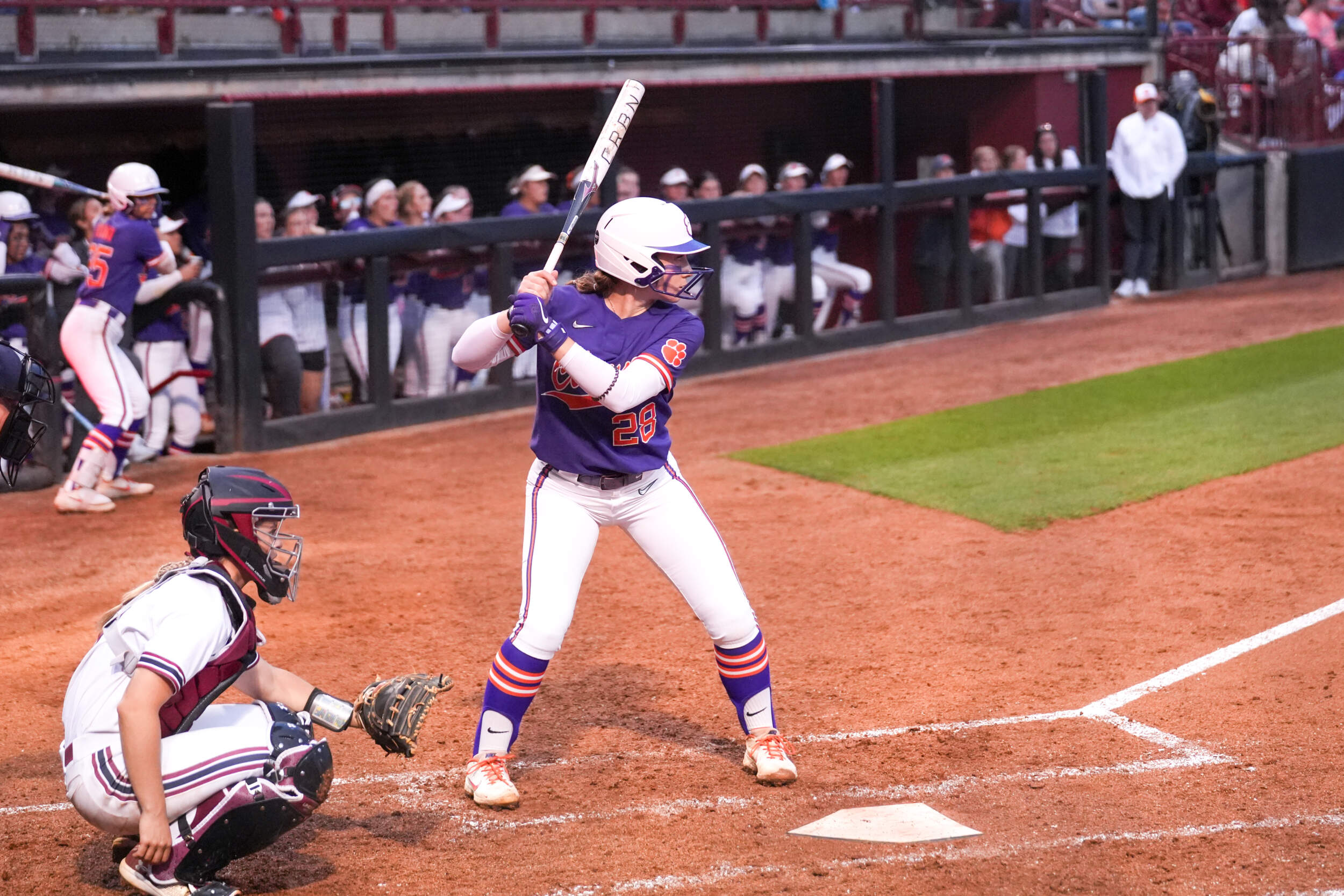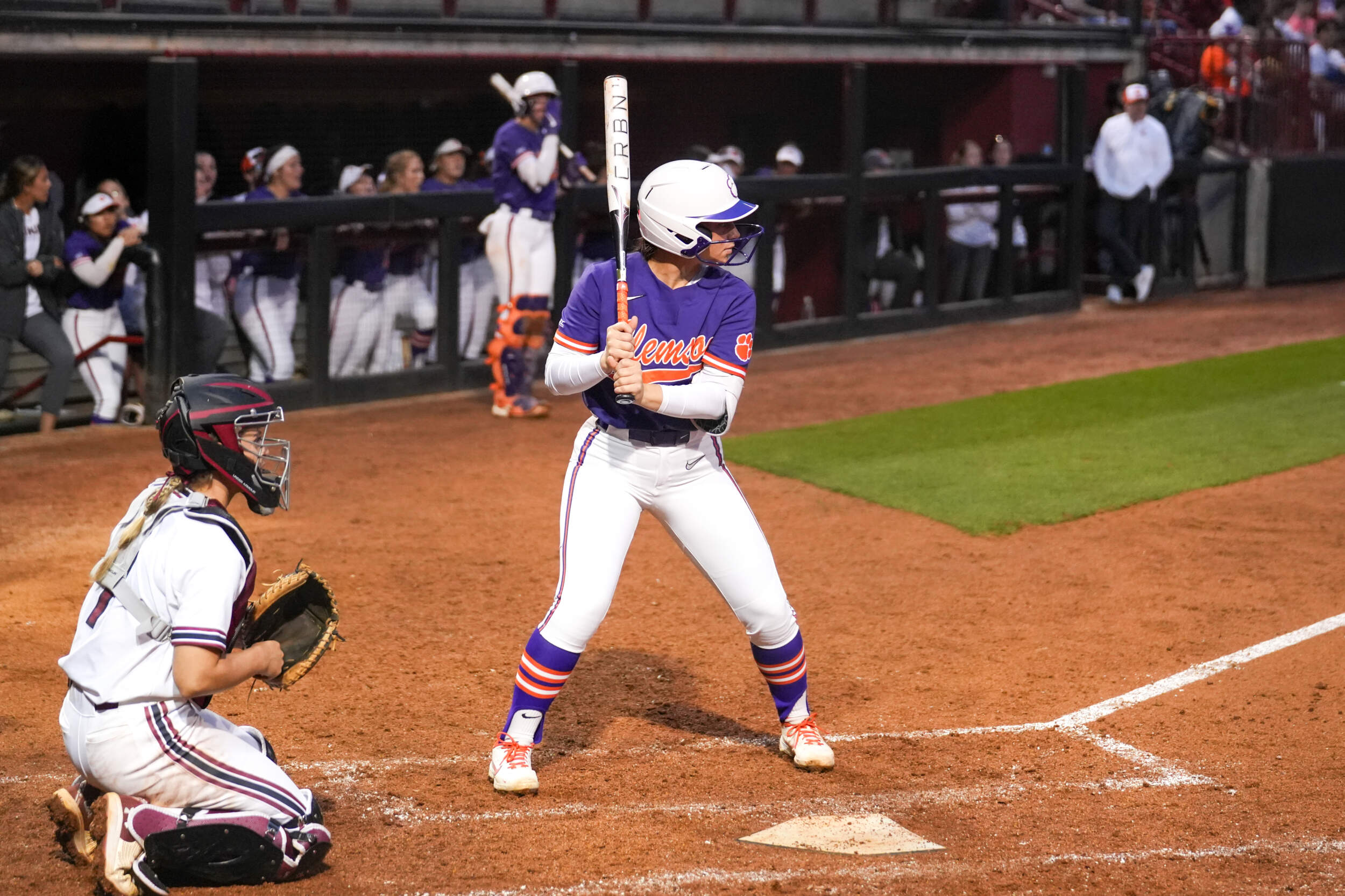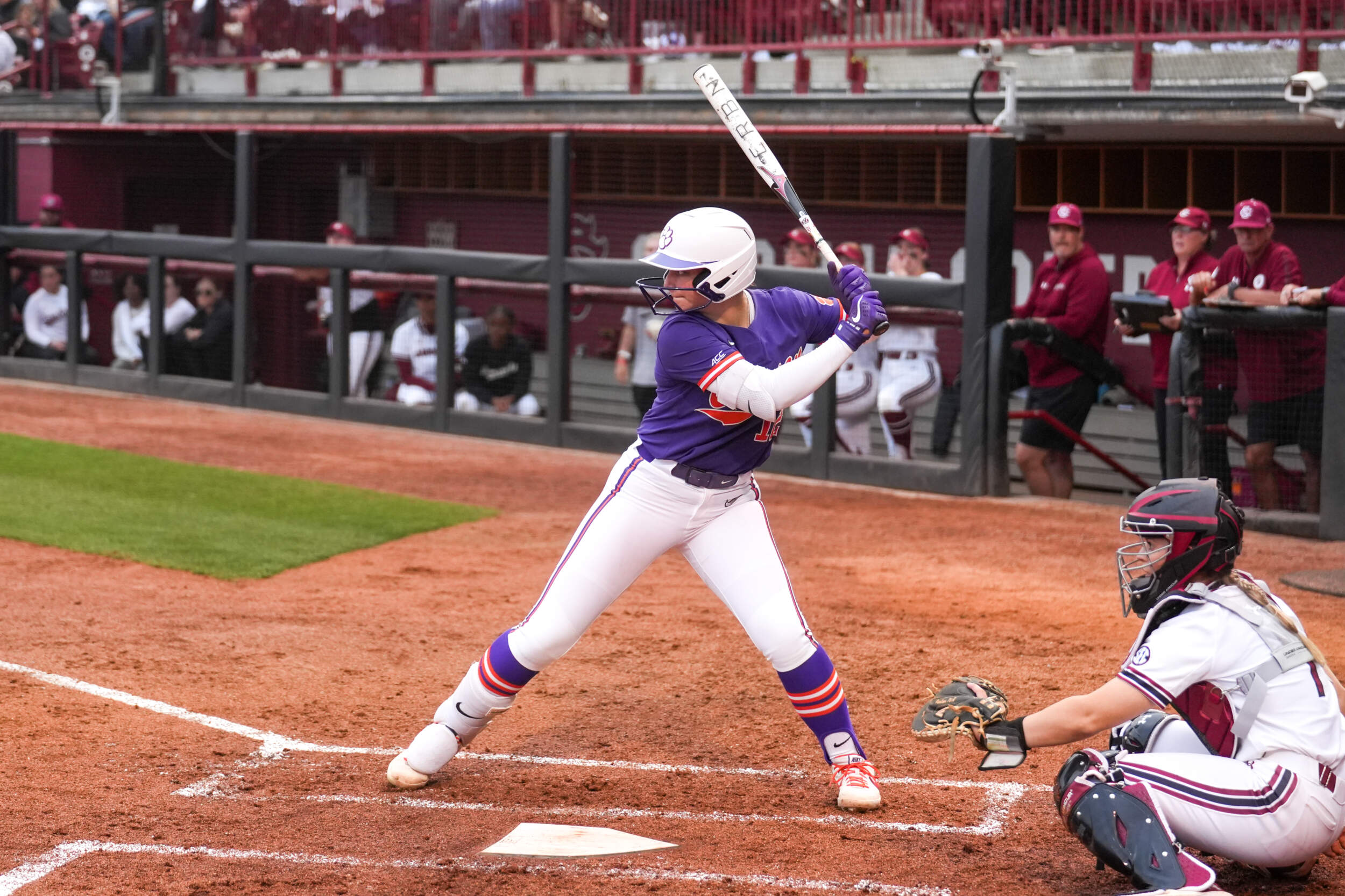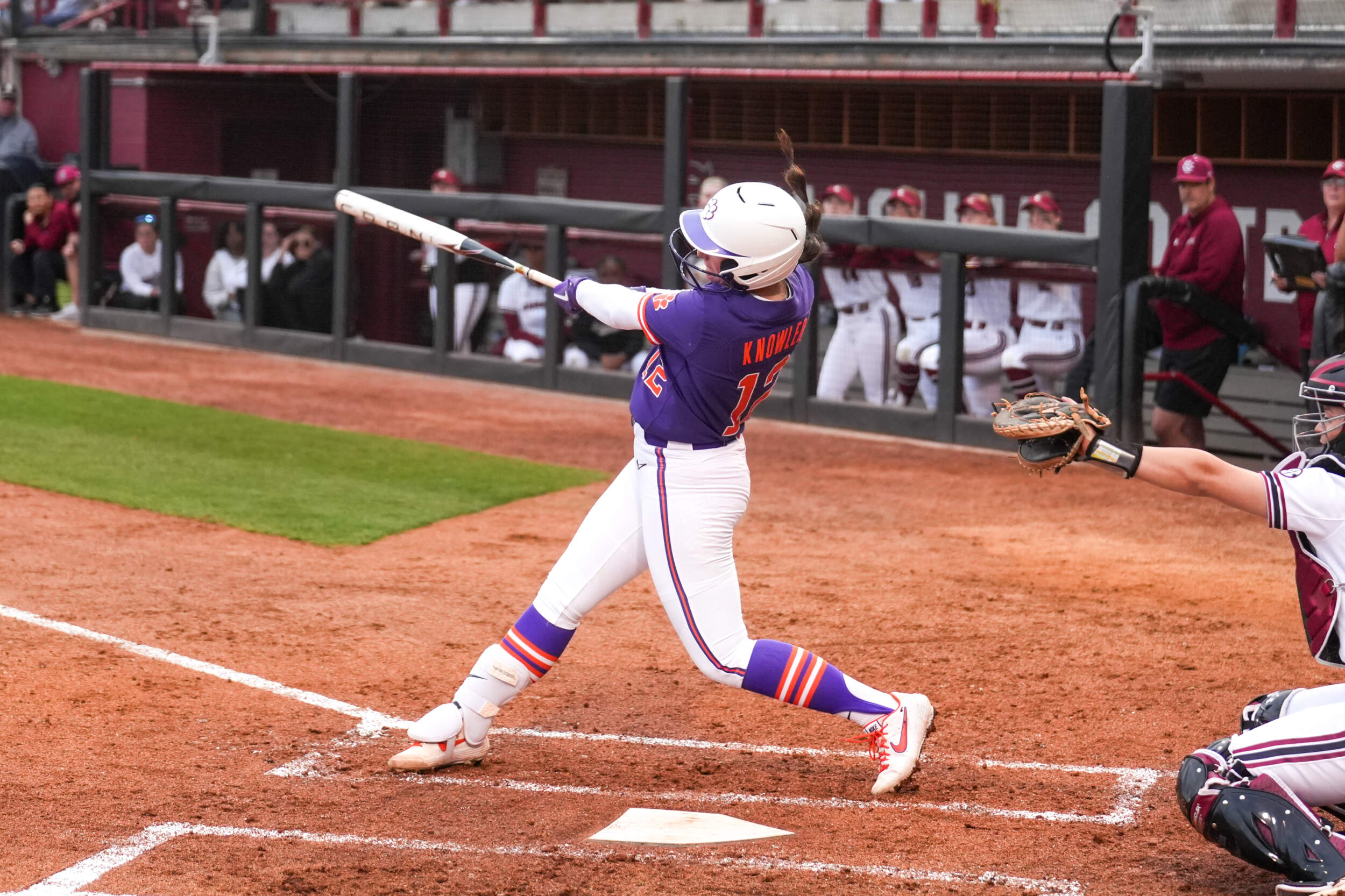 COLUMBIA, S.C. – Home runs from freshman Julia Knowler and junior Maddie Moore helped propel the No. 19/19 Clemson Tigers to a 7-0 victory against the No. 23/25 South Carolina Gamecocks on Tuesday evening in the Carolina Softball Stadium. The win moved the Tigers to 28-11 on the year, as South Carolina dropped to 28-13. This also moves Clemson’s all-time record against the Gamecocks to 6-1 and 4-0 in Columbia.
