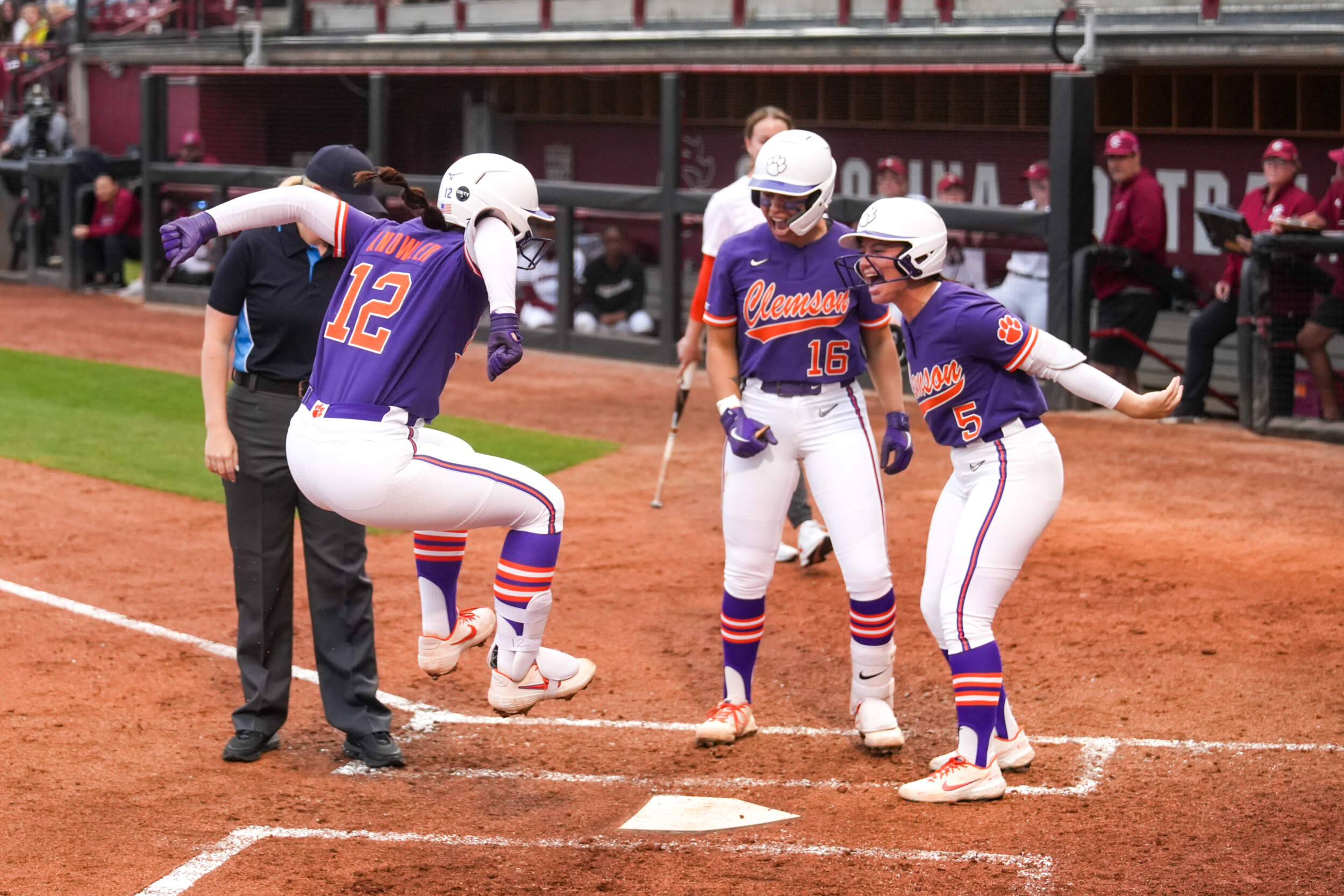 Moore added another solo home run to right field to open the third inning and make it 3-0 after three. Clemson scored again in the top of the fifth after Moore reached on an error, advanced to second on a ground out and moved to third following a single by McKenzie Clark. As Knowler reached on a fielder’s choice to South Carolina’s first baseman, Moore slid under the attempted tag at the plate to make it 4-0.