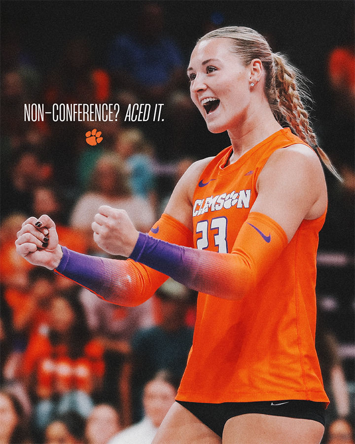 CLEMSON, S.C. – With the four-set victory (23-25, 25-13, 25-13, 25-18) over the Charleston Southern Buccaneers (6-6), the Clemson Tigers (12-0) have secured a perfect nonconference record. The 12-match win streak to start the season is the sixth time that a Clemson team has done so in program history and the 9-0 home record to start the year is the best since 1999.