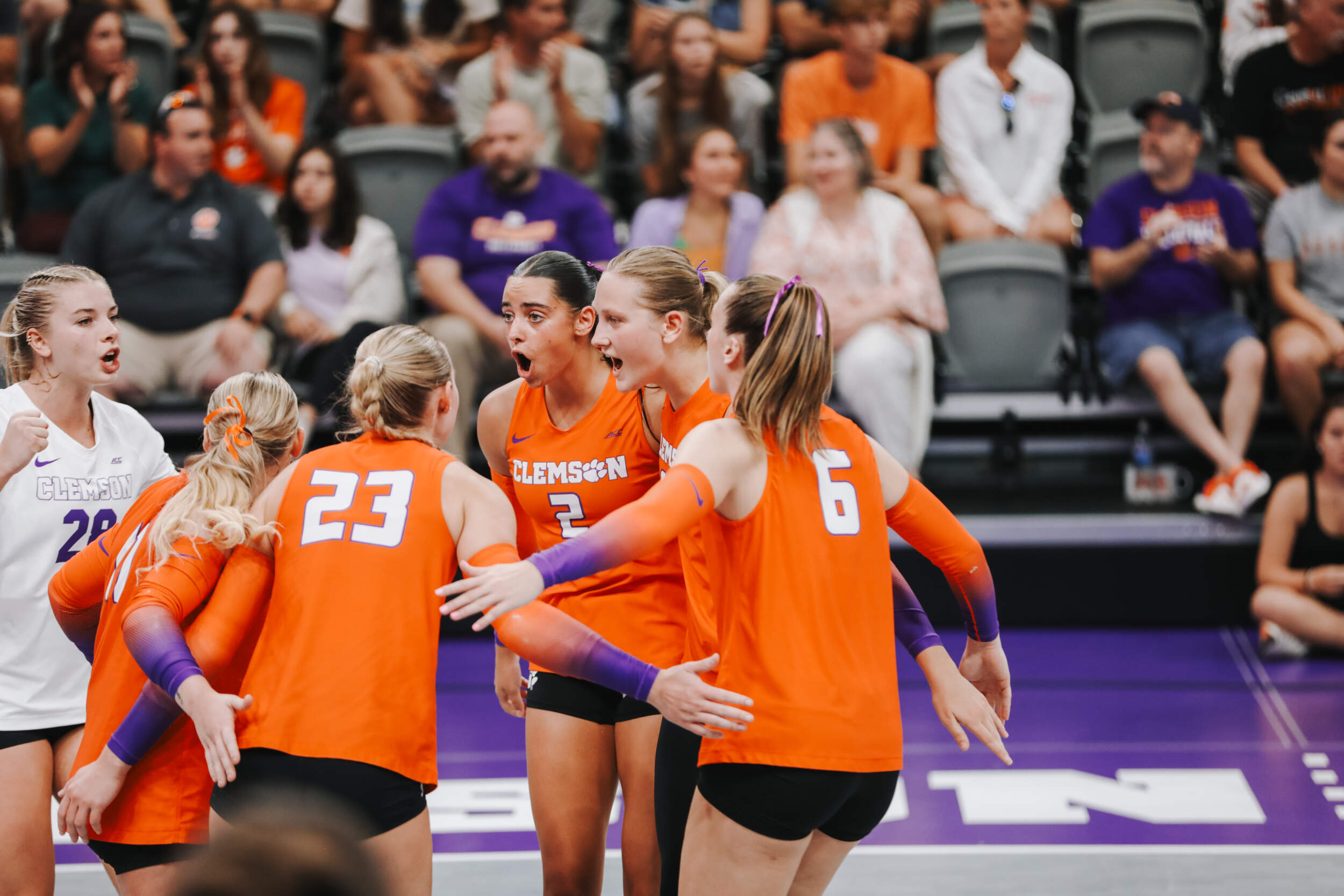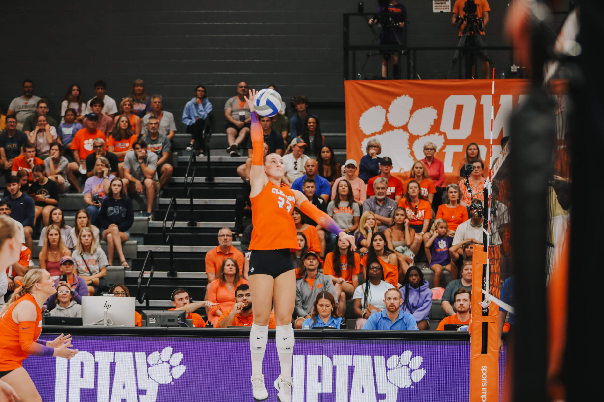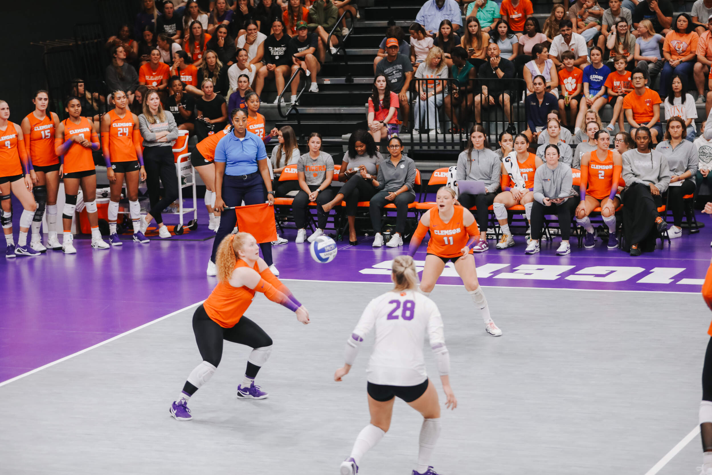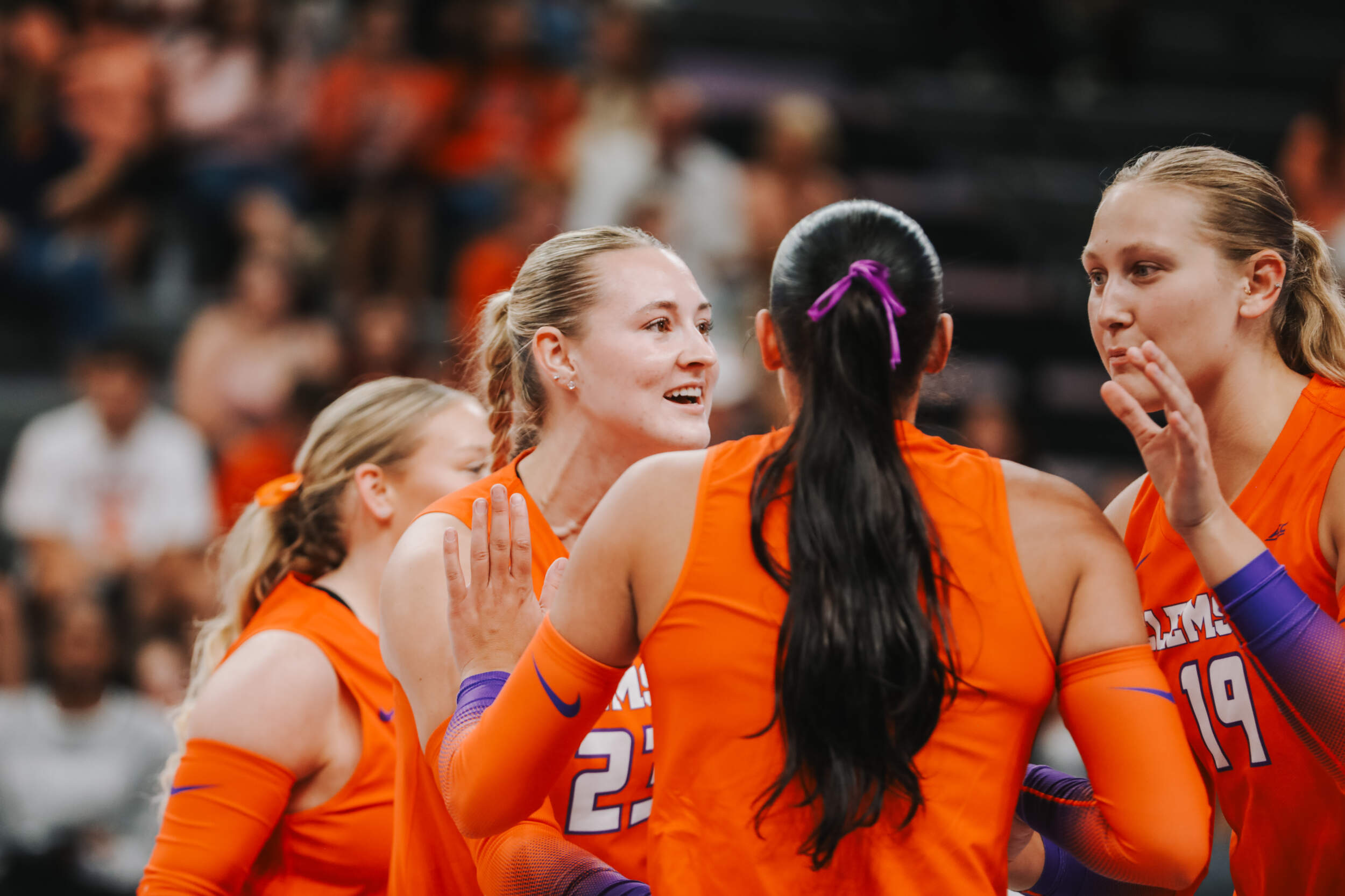 The Tigers started in a dead heat with the Buccaneers in the third set and traded points until it was tied, 9-9. Clemson would then go on an eight-point run powered by a trio of aces from Sandt along with a kill and solo block by Okur. A pair of kills by Hansen, an ace by Addi Rains and a kill each from Sandt and McGrath would put the Tigers on a five-point run to claim the set, 25-13.