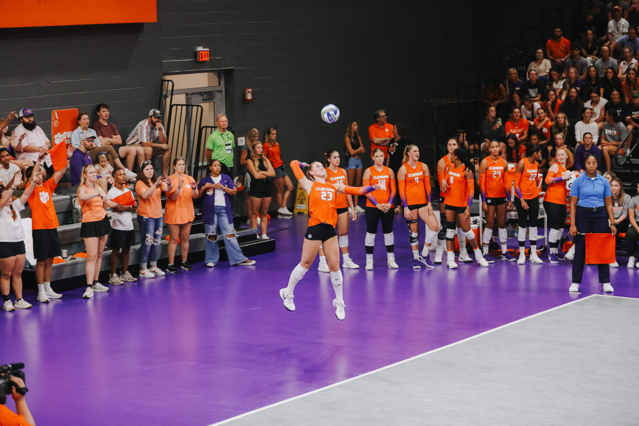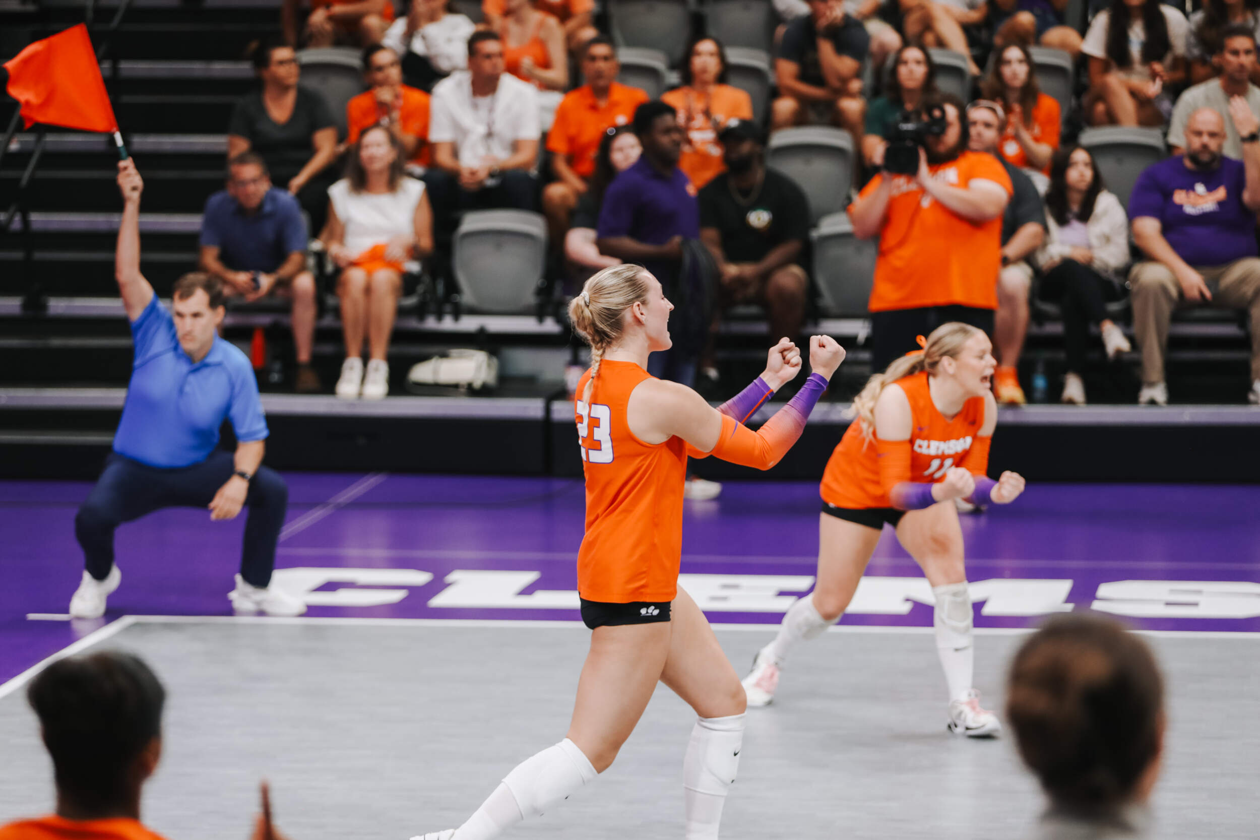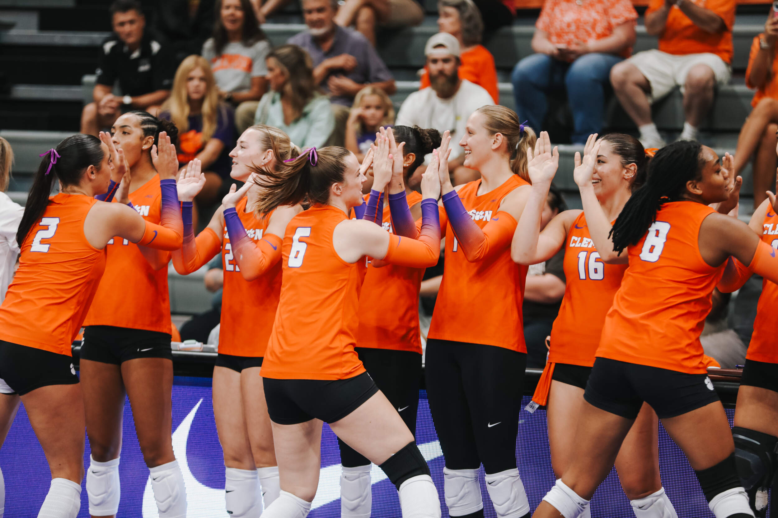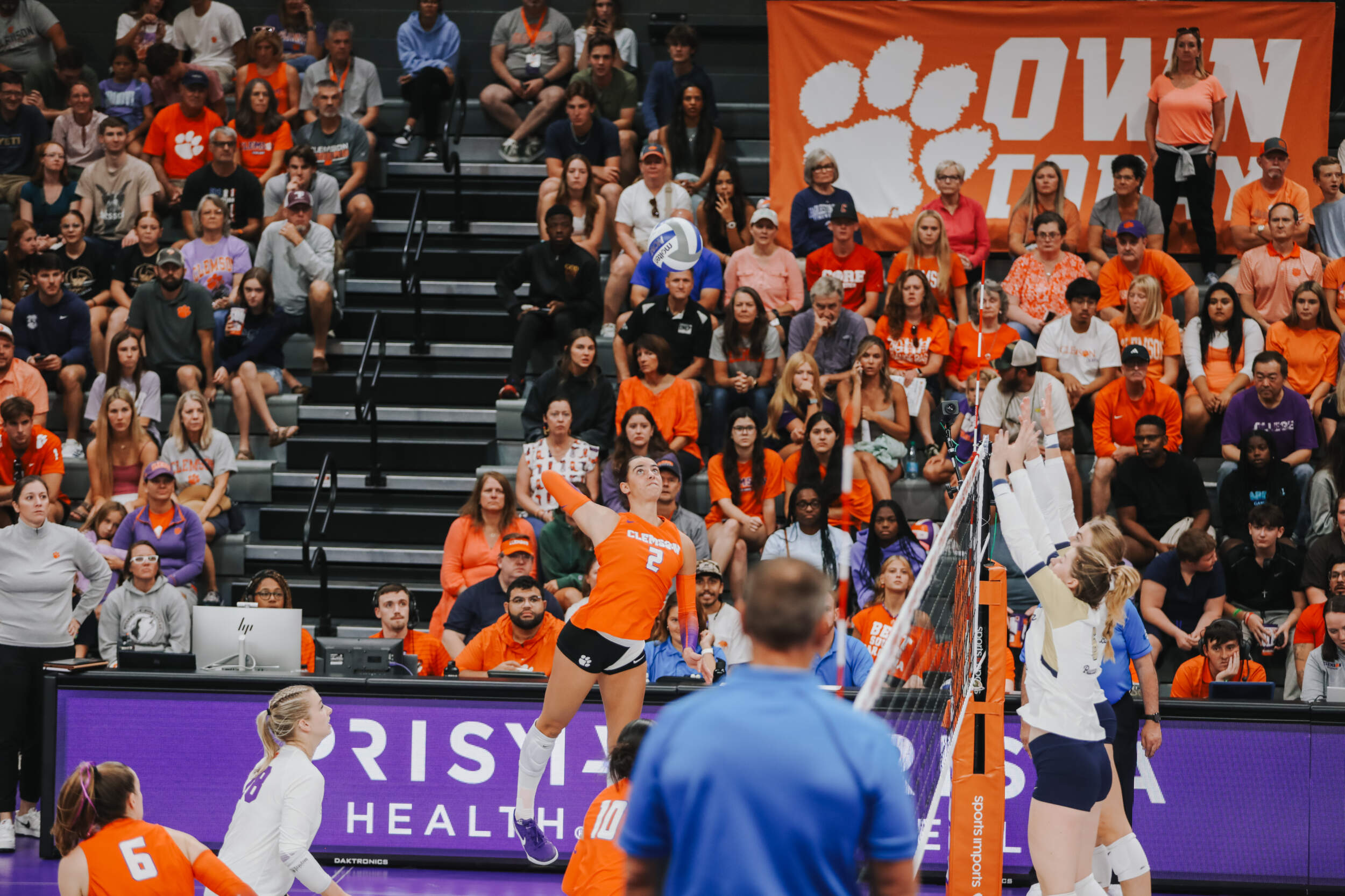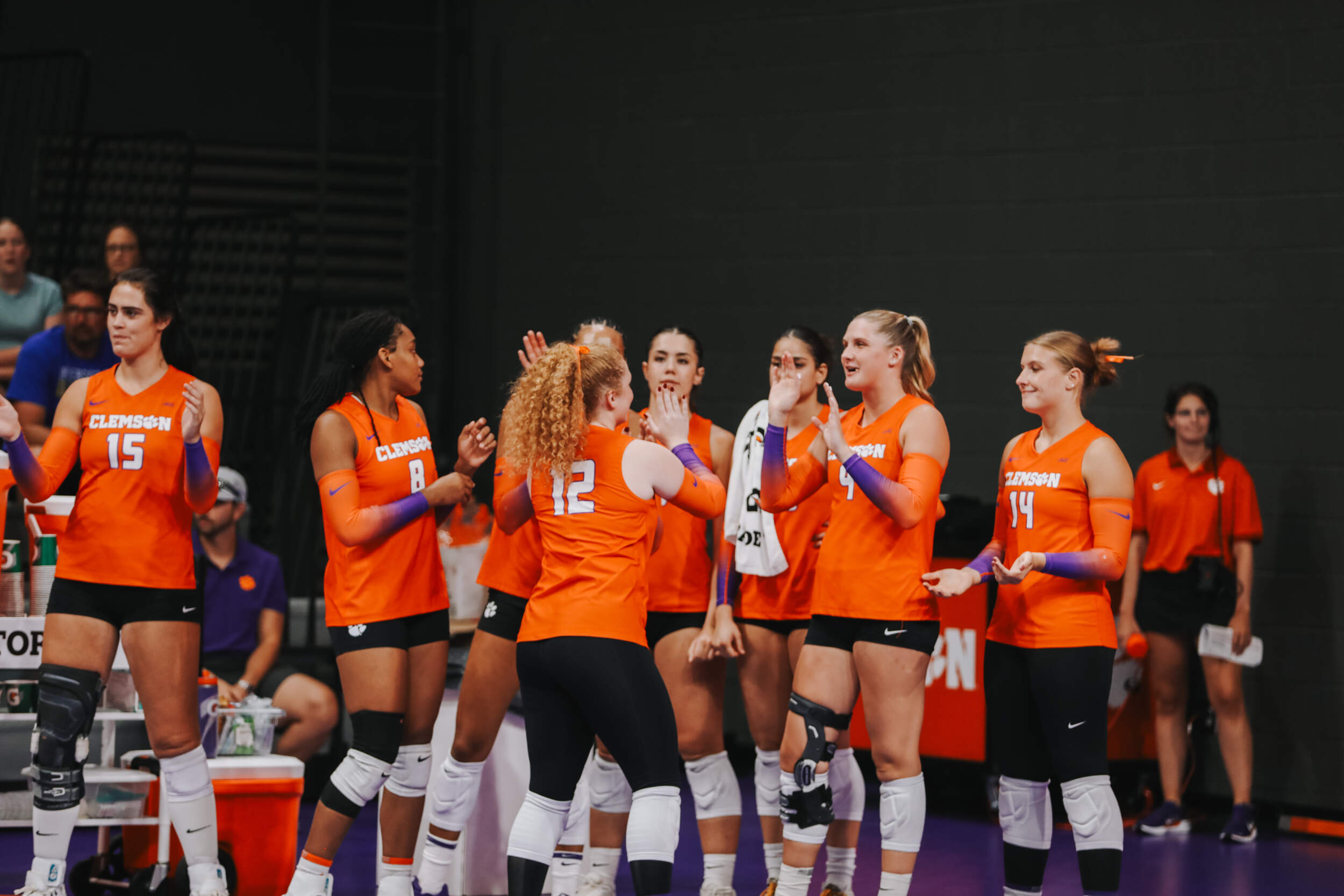 The Tigers started in a dead heat with the Buccaneers in the third set and traded points until it was tied, 9-9. Clemson would then go on an eight-point run powered by a trio of aces from Sandt along with a kill and solo block by Okur. A pair of kills by Hansen, an ace by Addi Rains and a kill each from Sandt and McGrath would put the Tigers on a five-point run to claim the set, 25-13.