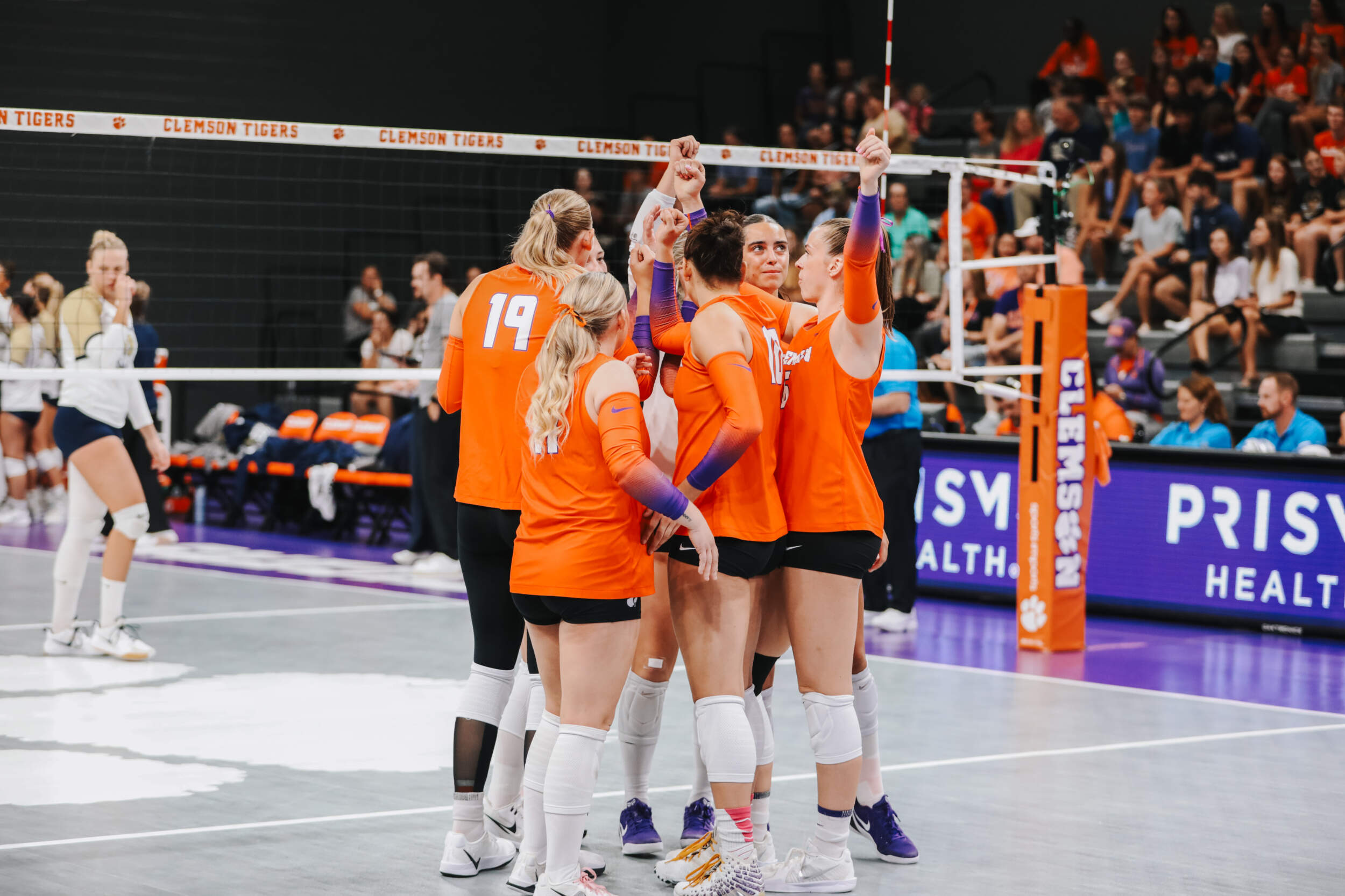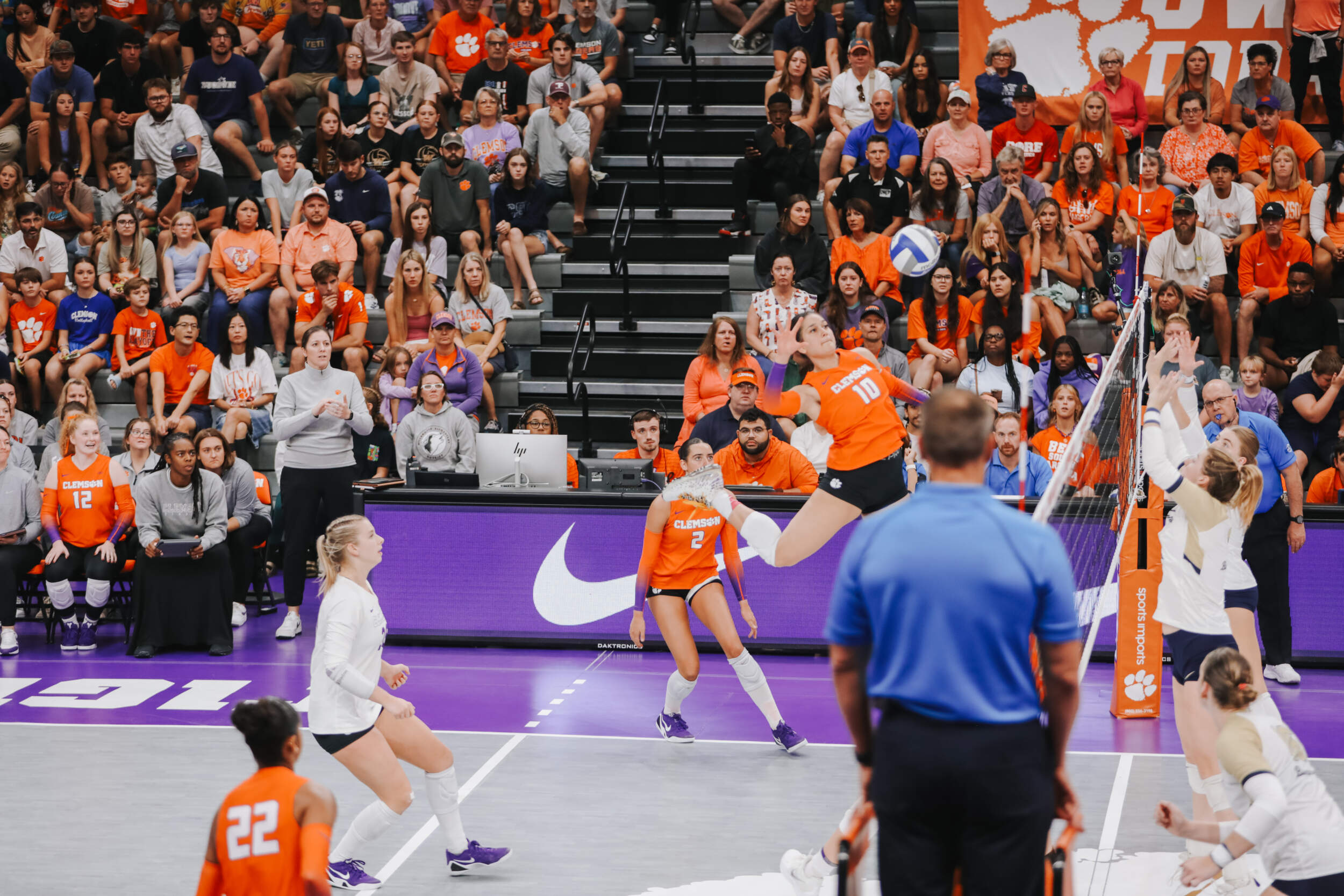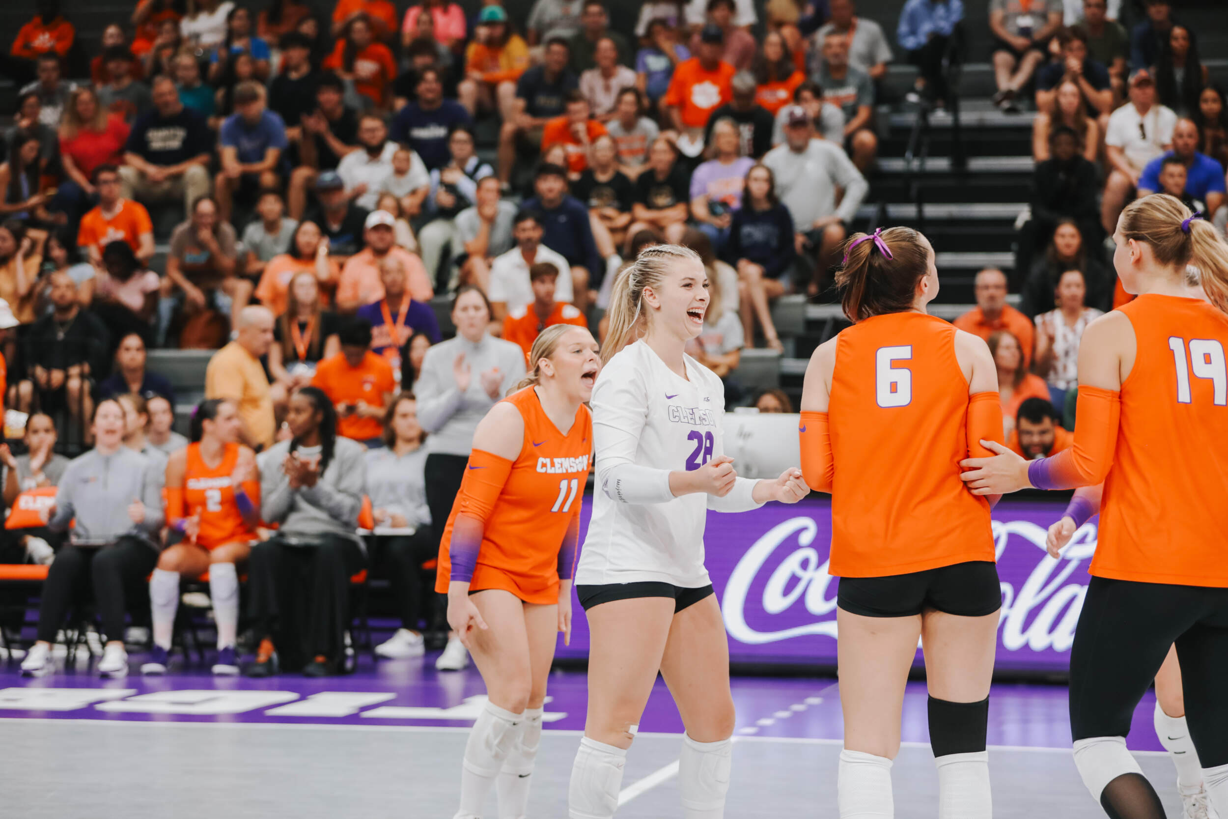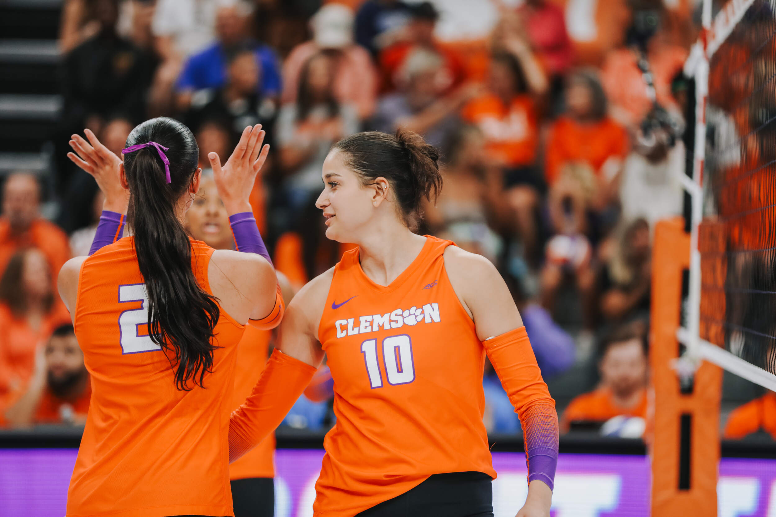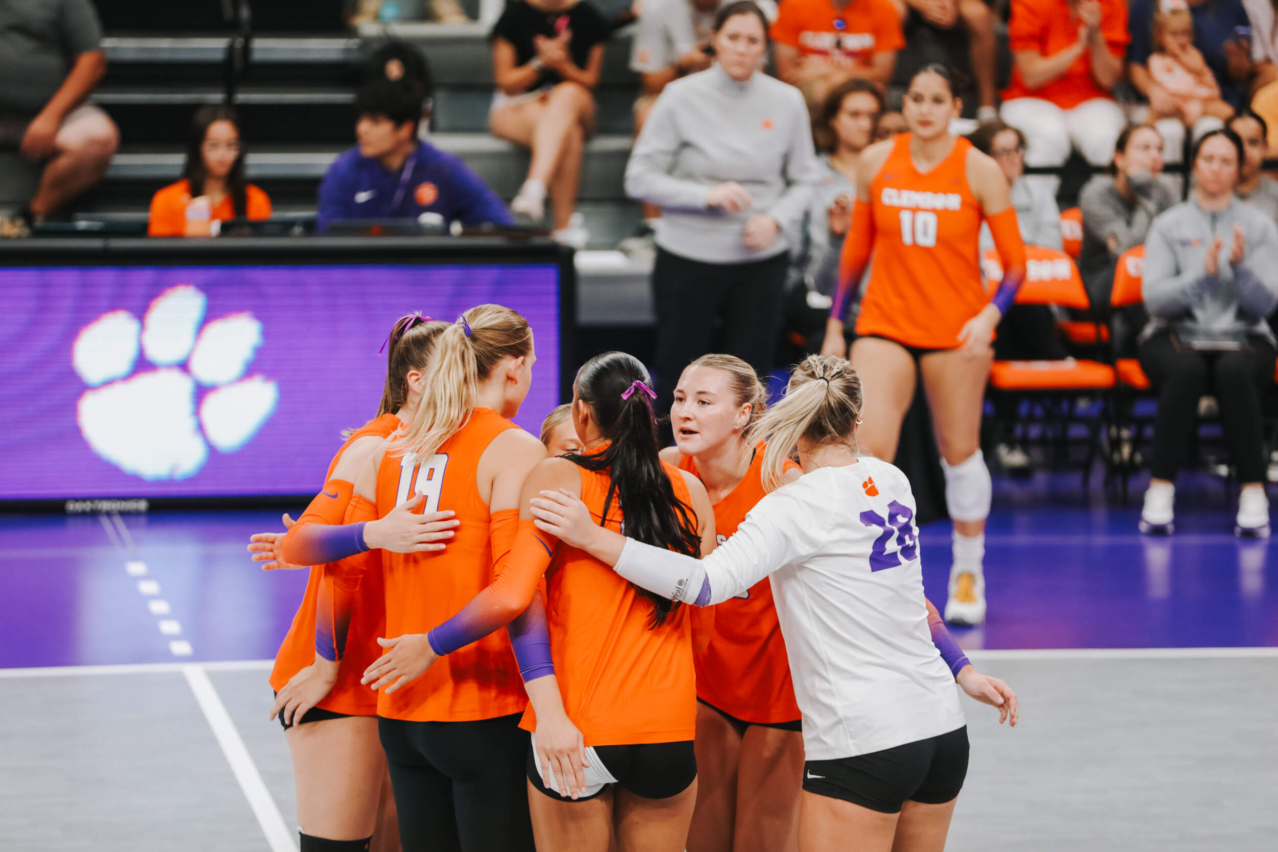 The Tigers started in a dead heat with the Buccaneers in the third set and traded points until it was tied, 9-9. Clemson would then go on an eight-point run powered by a trio of aces from Sandt along with a kill and solo block by Okur. A pair of kills by Hansen, an ace by Addi Rains and a kill each from Sandt and McGrath would put the Tigers on a five-point run to claim the set, 25-13.