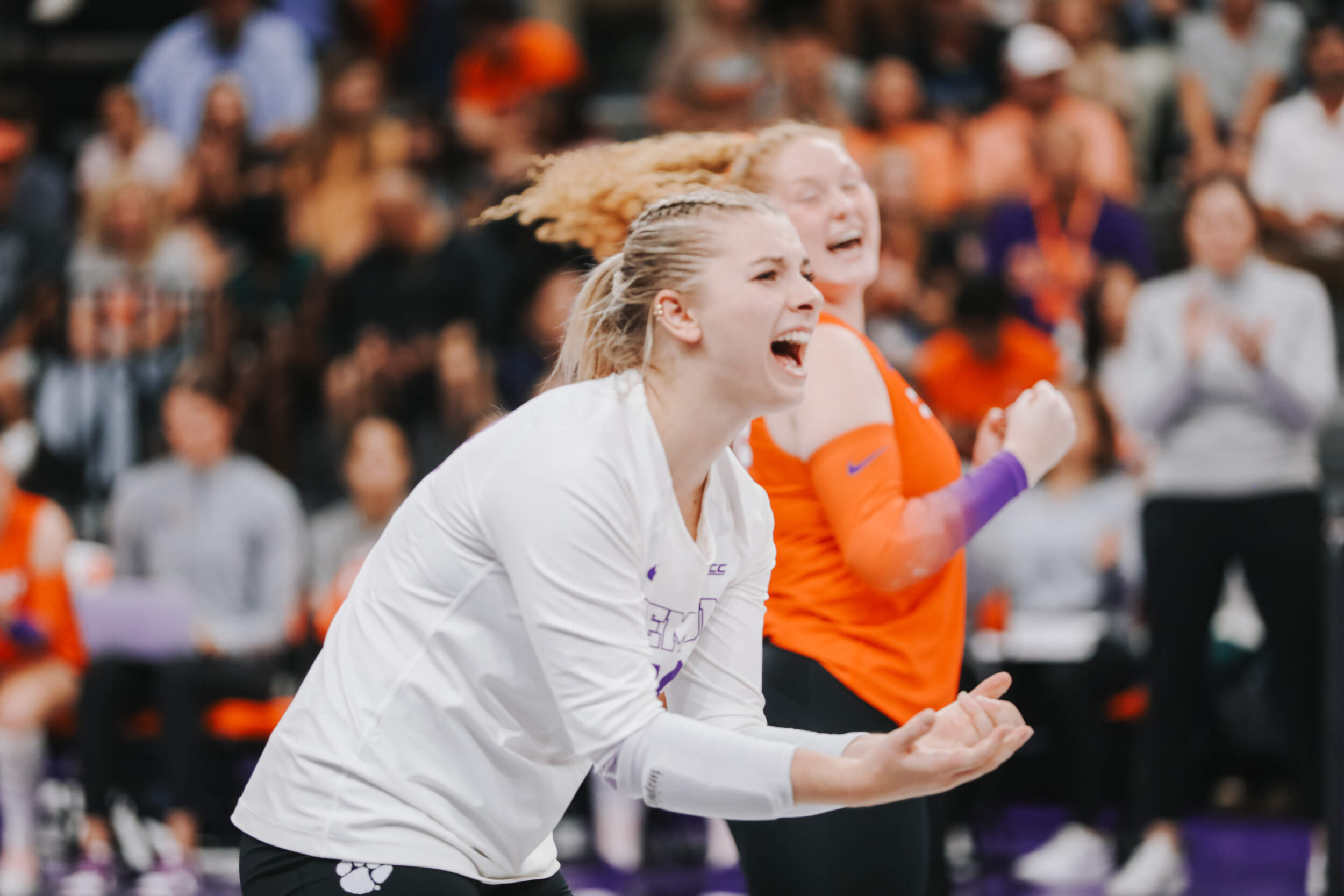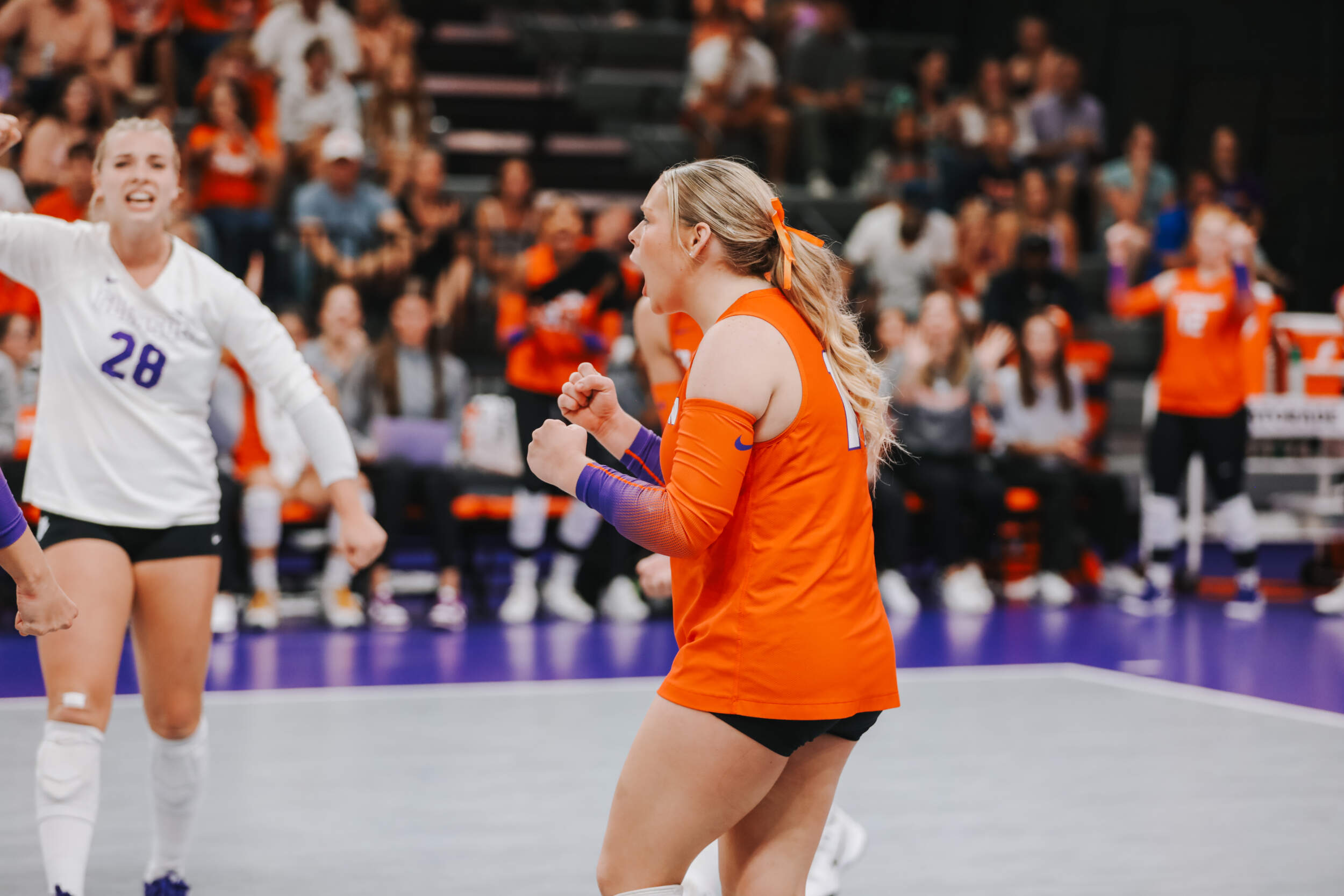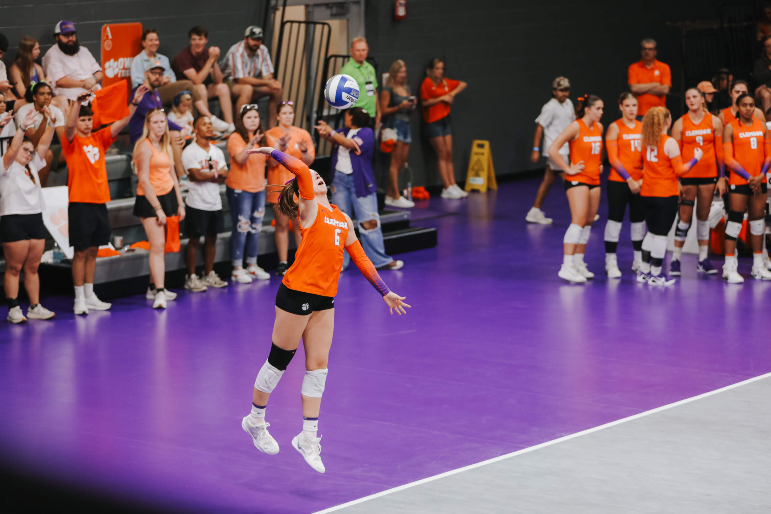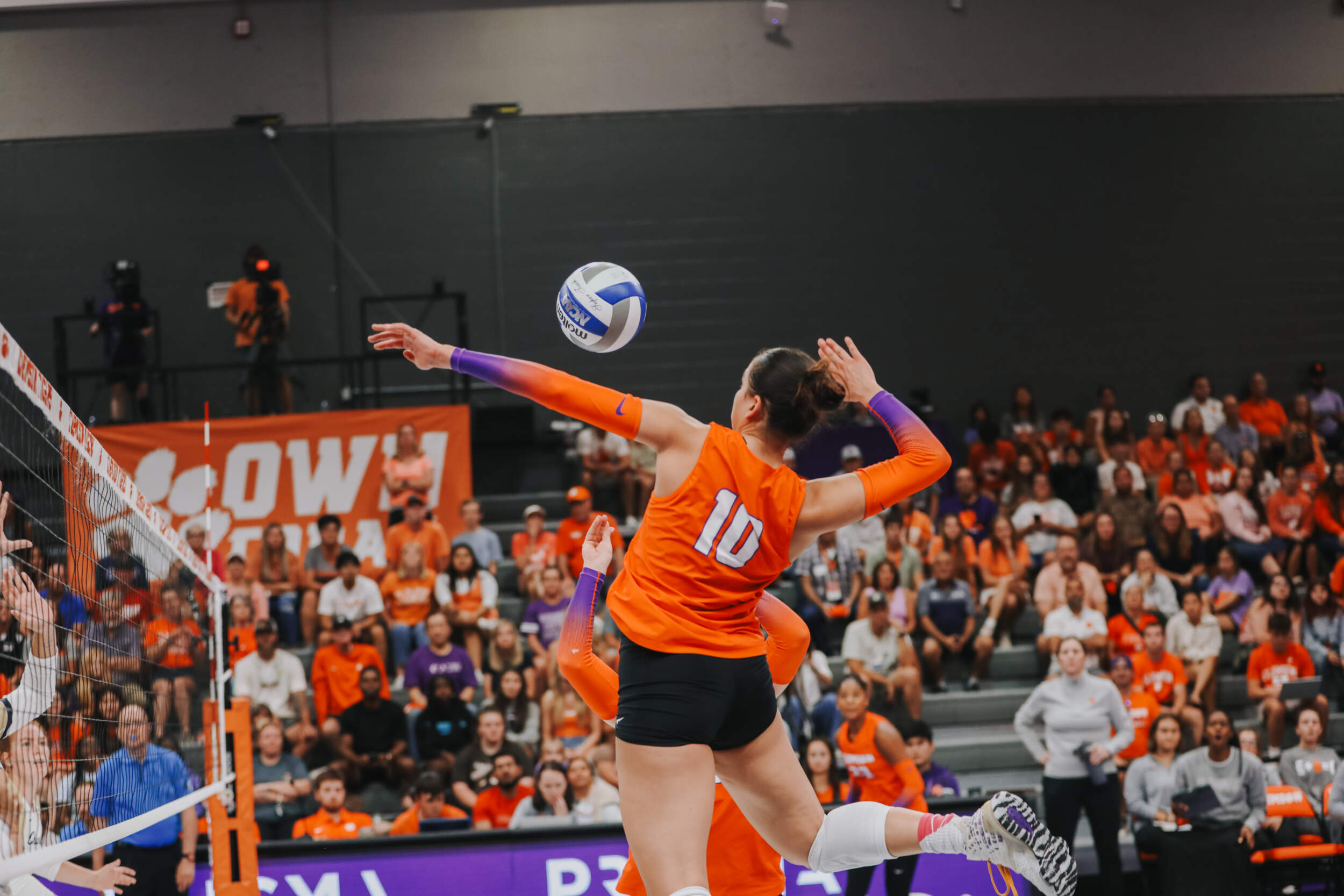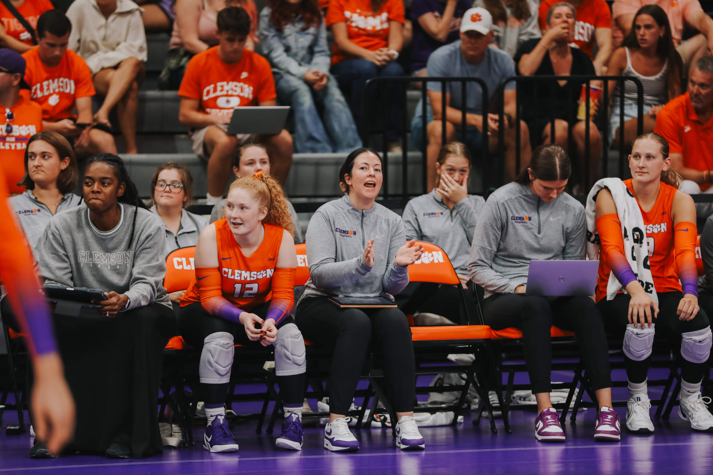 The Tigers started in a dead heat with the Buccaneers in the third set and traded points until it was tied, 9-9. Clemson would then go on an eight-point run powered by a trio of aces from Sandt along with a kill and solo block by Okur. A pair of kills by Hansen, an ace by Addi Rains and a kill each from Sandt and McGrath would put the Tigers on a five-point run to claim the set, 25-13.