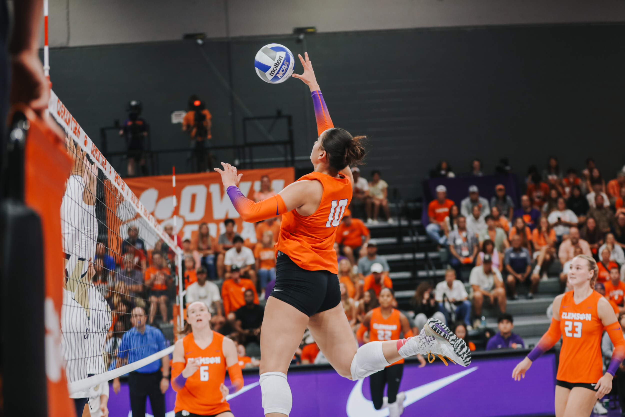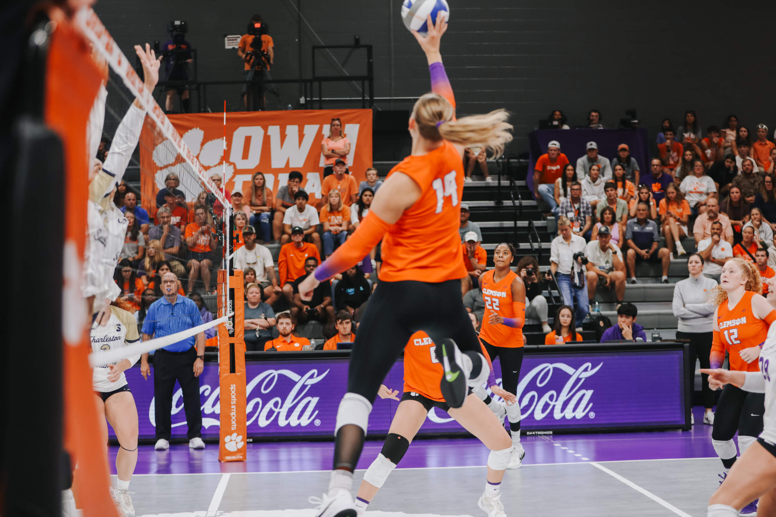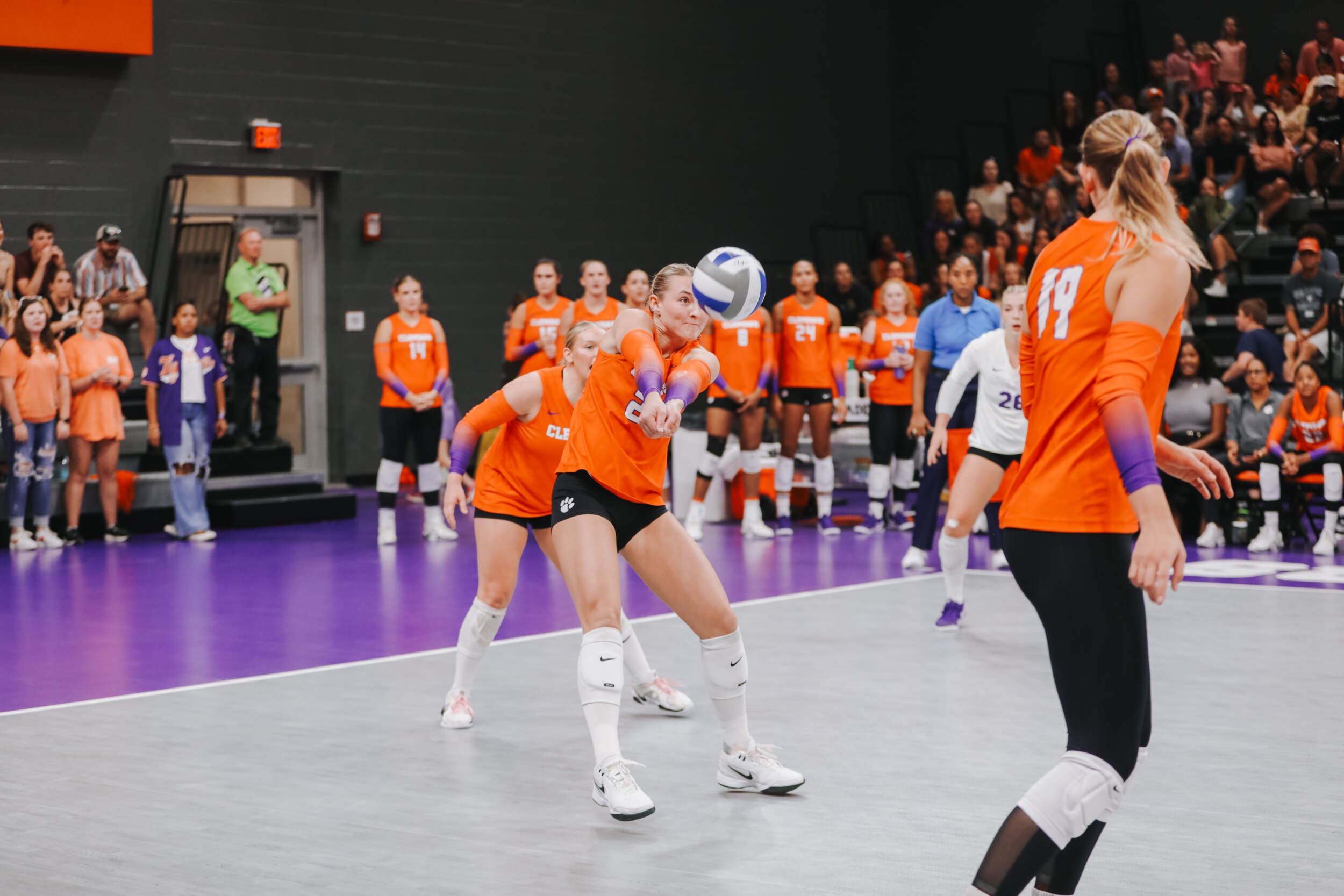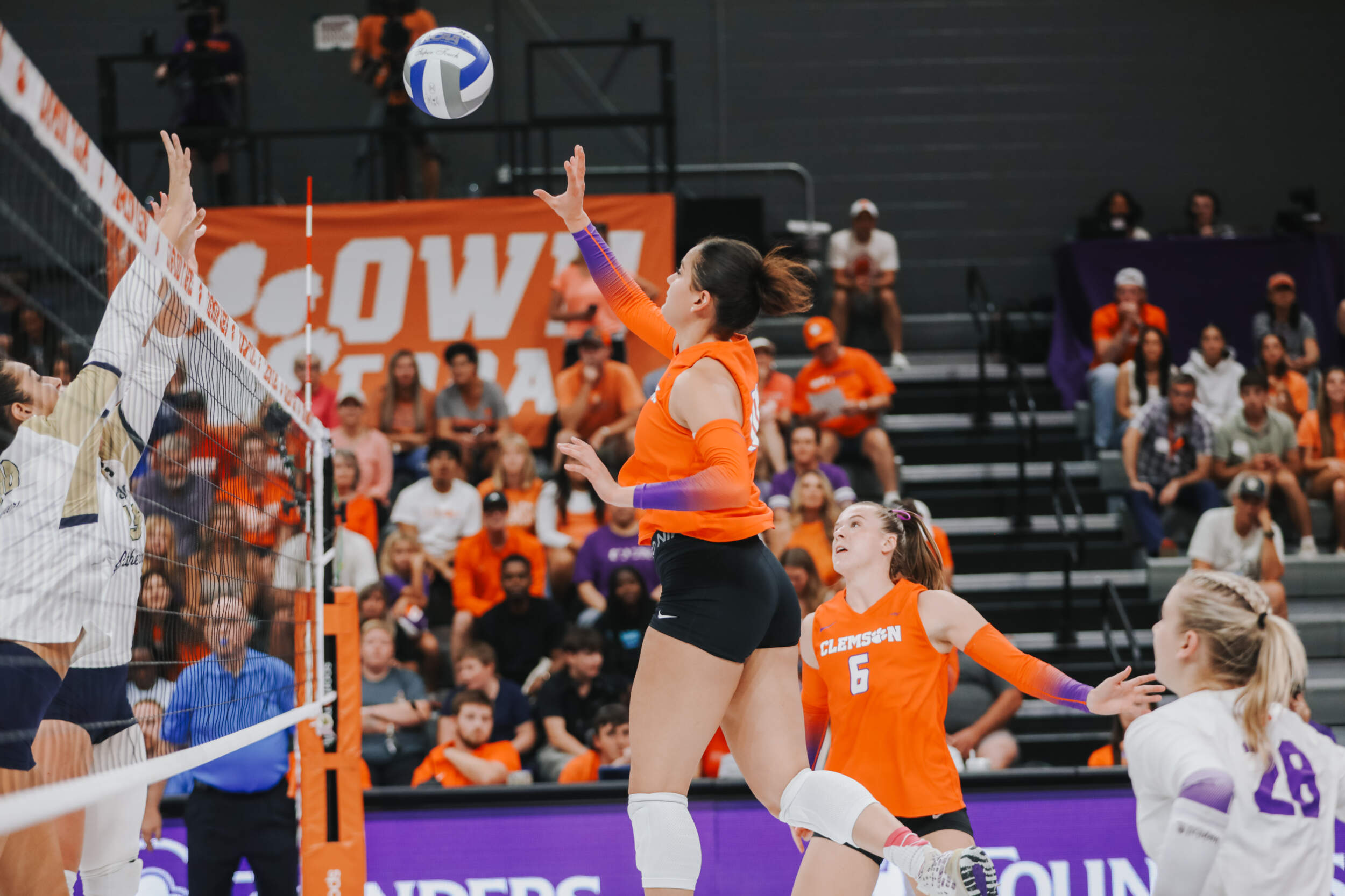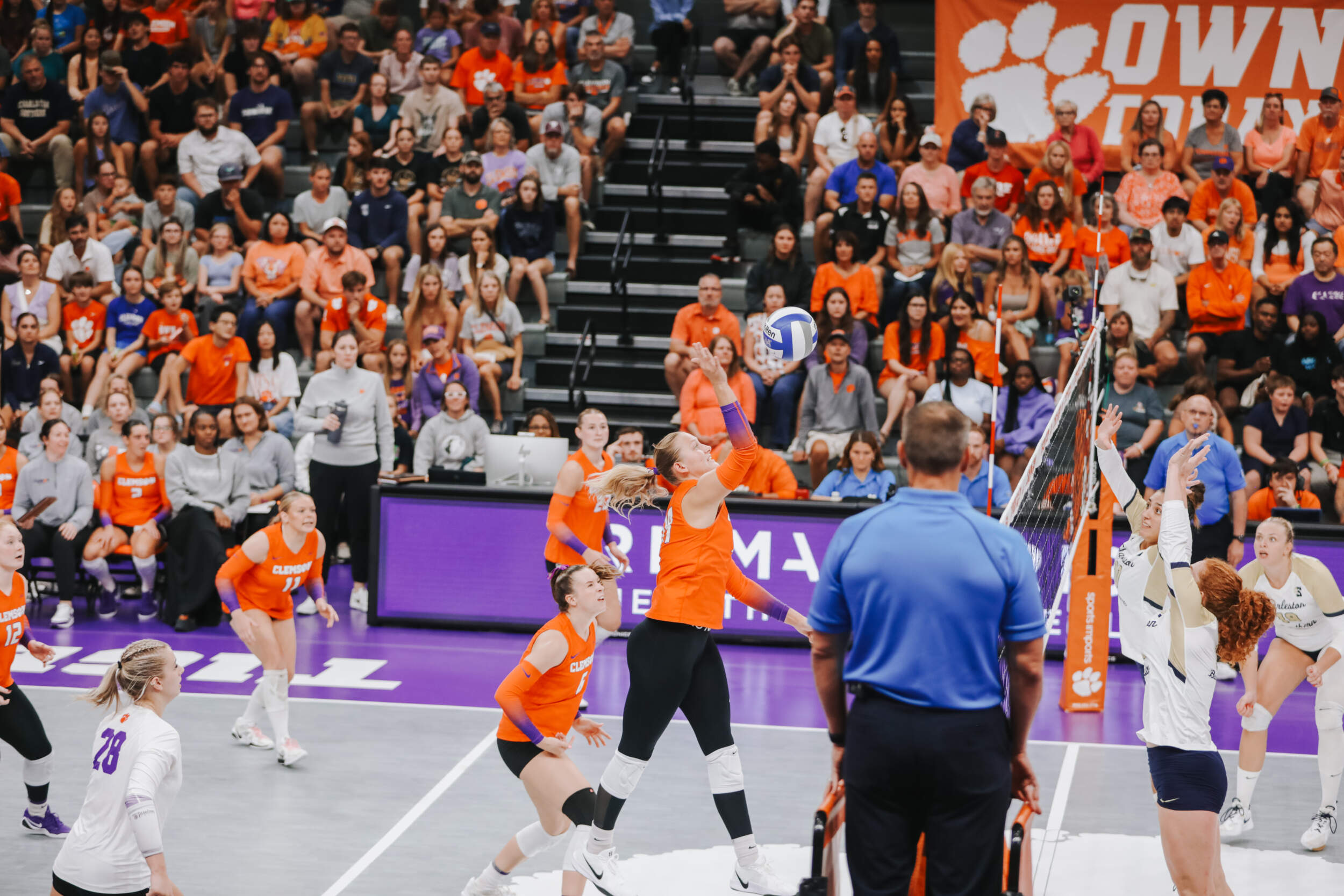 In the first set of the evening, the Tigers and the Buccaneers traded points with Charleston Southern grabbing a two-point lead at the media timeout. Clemson would battle back and take a 22-21 lead thanks to an ace from Claire Luoma and kills by Mia Moore and Kate Hansen. A three-point run from Charleston Southern would eventually secure the first set for the Buccaneers, 25-23.
