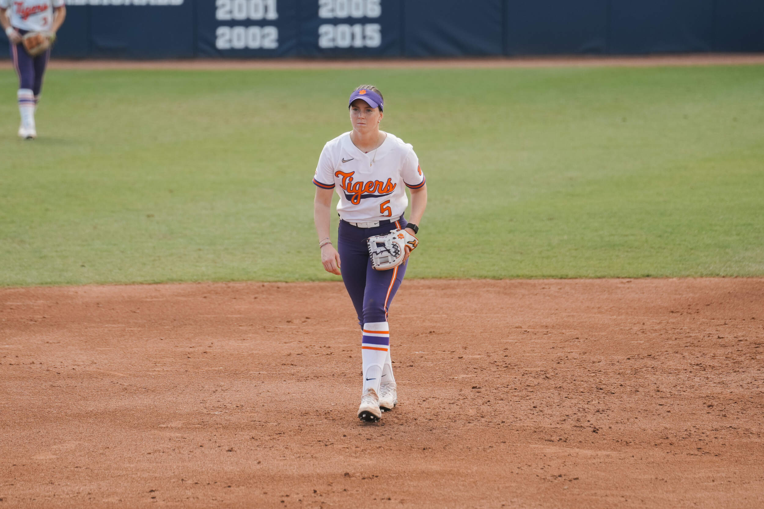 Clemson’s freshmen class didn’t slow down offensively as Cintron drew a leadoff walk to open the fifth. She was replaced by Riley Fennell, who advanced to second on a single from Vieira, and eventually came around to score after Wilson was hit by a pitch to load the bases. Minish was able to join the freshmen group, picking up her first RBI with a sac fly to plate Fennell and make it 5-1 after five.