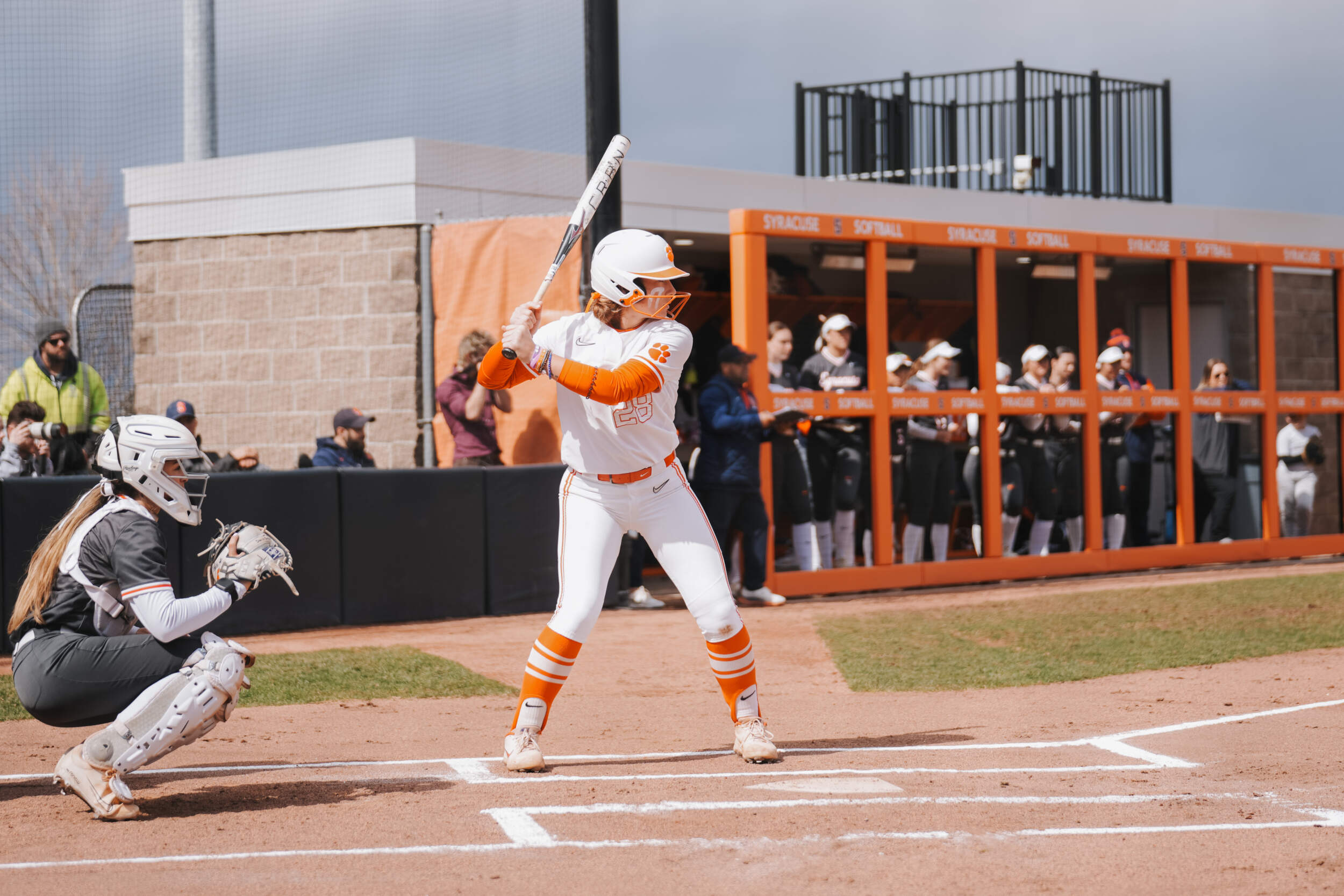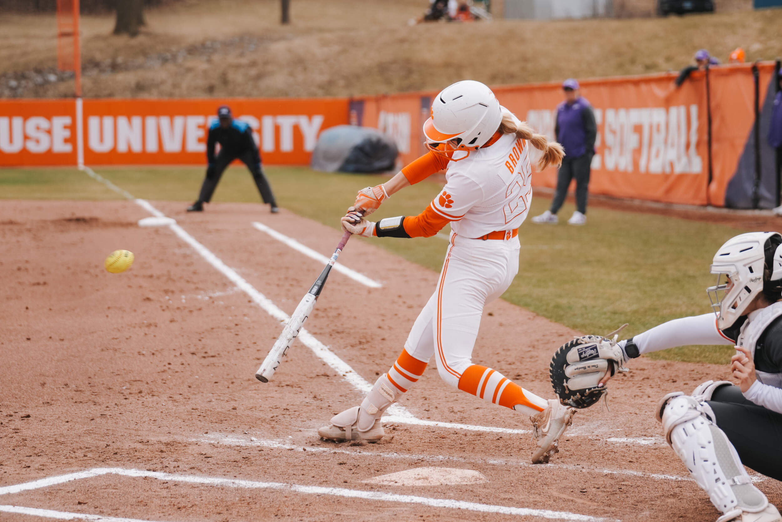 The Clemson bats came alive again in the seventh inning with two outs. Sam Minish, Kylee Johnson and Collins drew three straight walks to load the bases. With the heat on, Brockenbrough drove a ball deep down the right field line to clear the bases for a double. Brown immediately ripped a hard-hit ball at Syracuse’s second baseman for an RBI single to score Brockenbrough and extend the Tigers’ lead to 10-0.