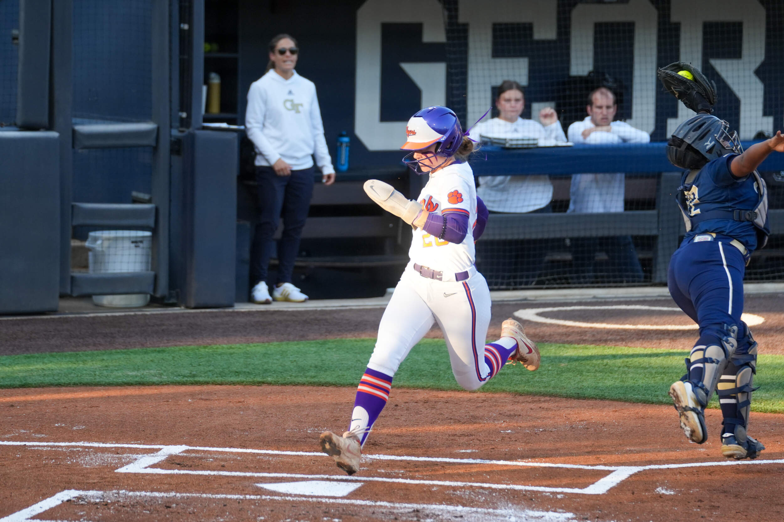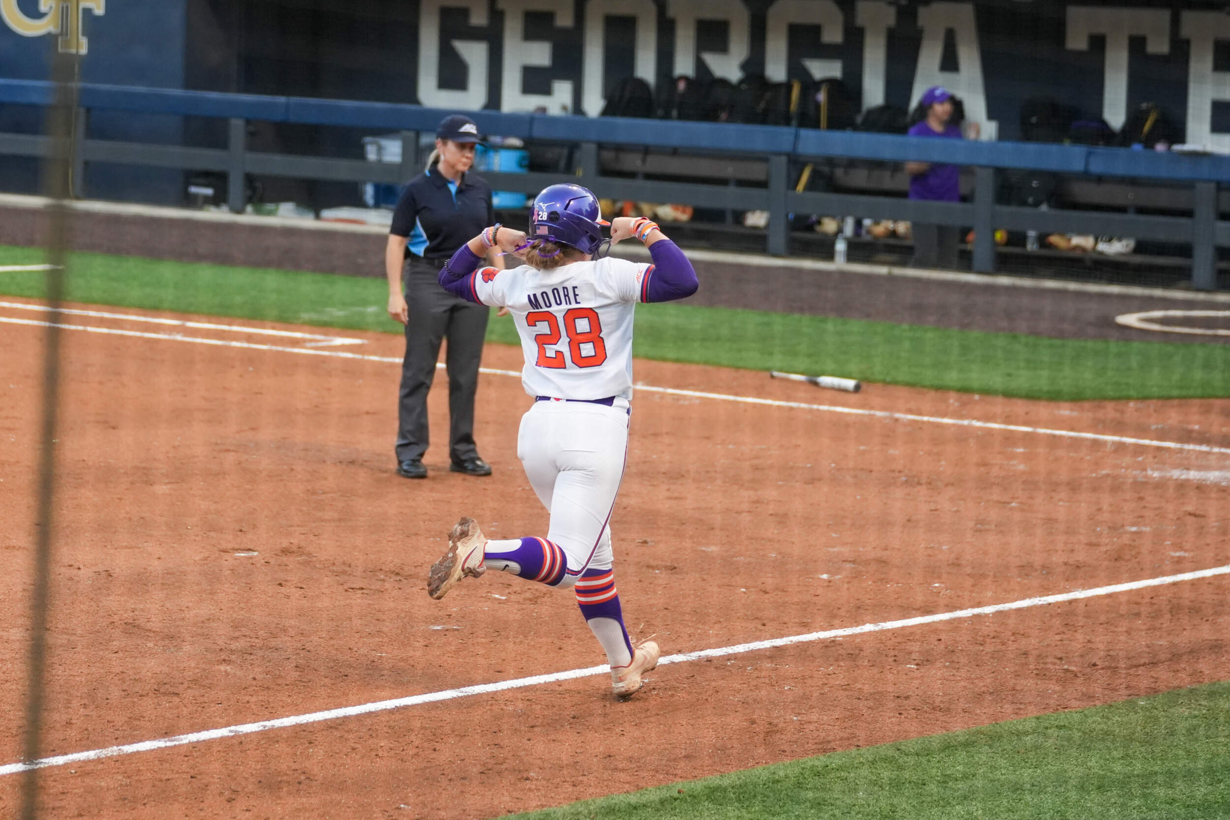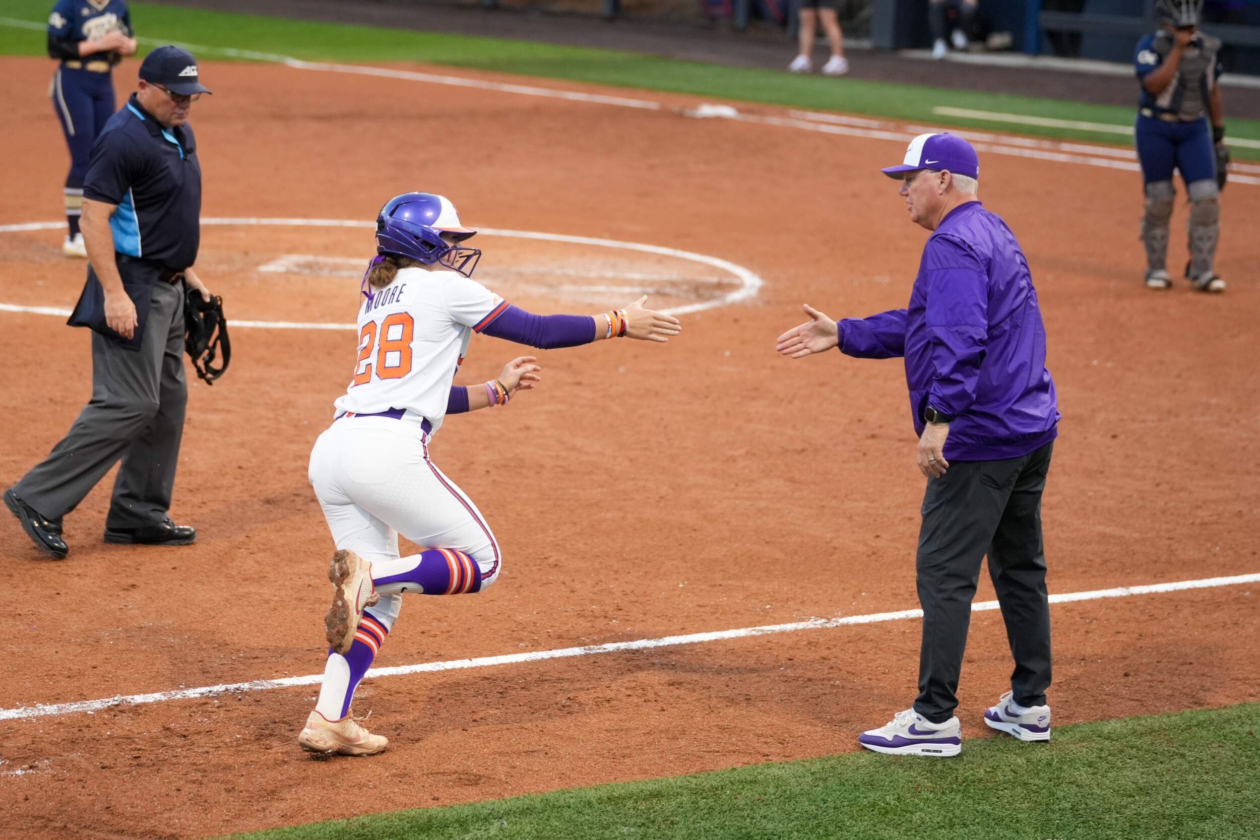 In the fourth, Clemson tacked on four additional runs after Brown drew a walk and Moore doubled to put two in scoring position. Knowler drew a five-pitch walk, and Brown advanced home on the play due to a wild pitch. After the Yellow Jackets changed pitchers, Cintron stepped to the plate and swung on the first pitch of her at bat for a three-run homer to make it 17-0 after four. It was her 11th of the season, which sits second all-time for freshmen at Clemson.