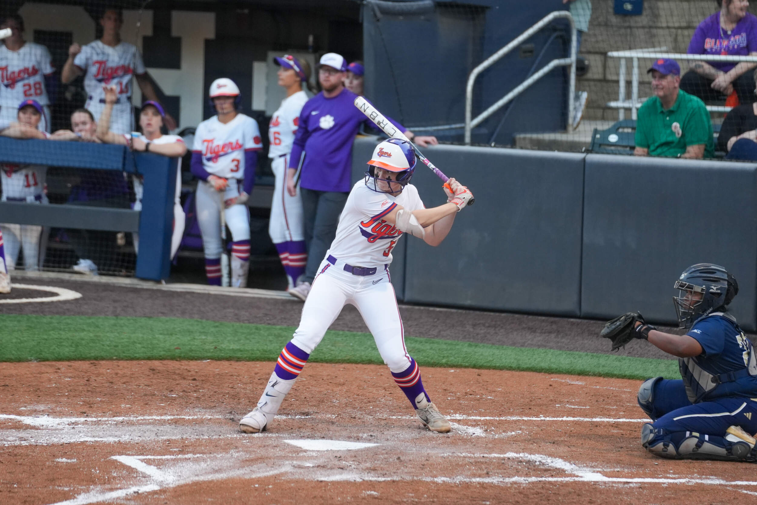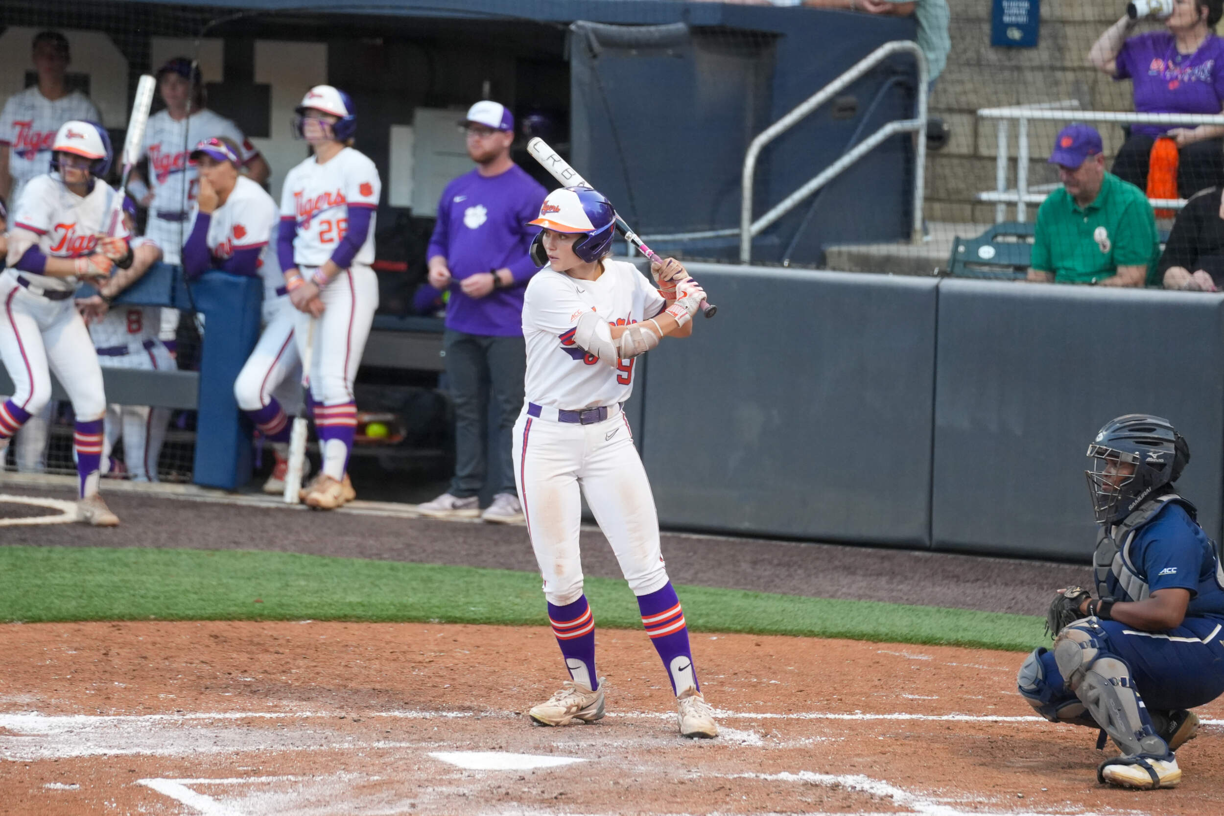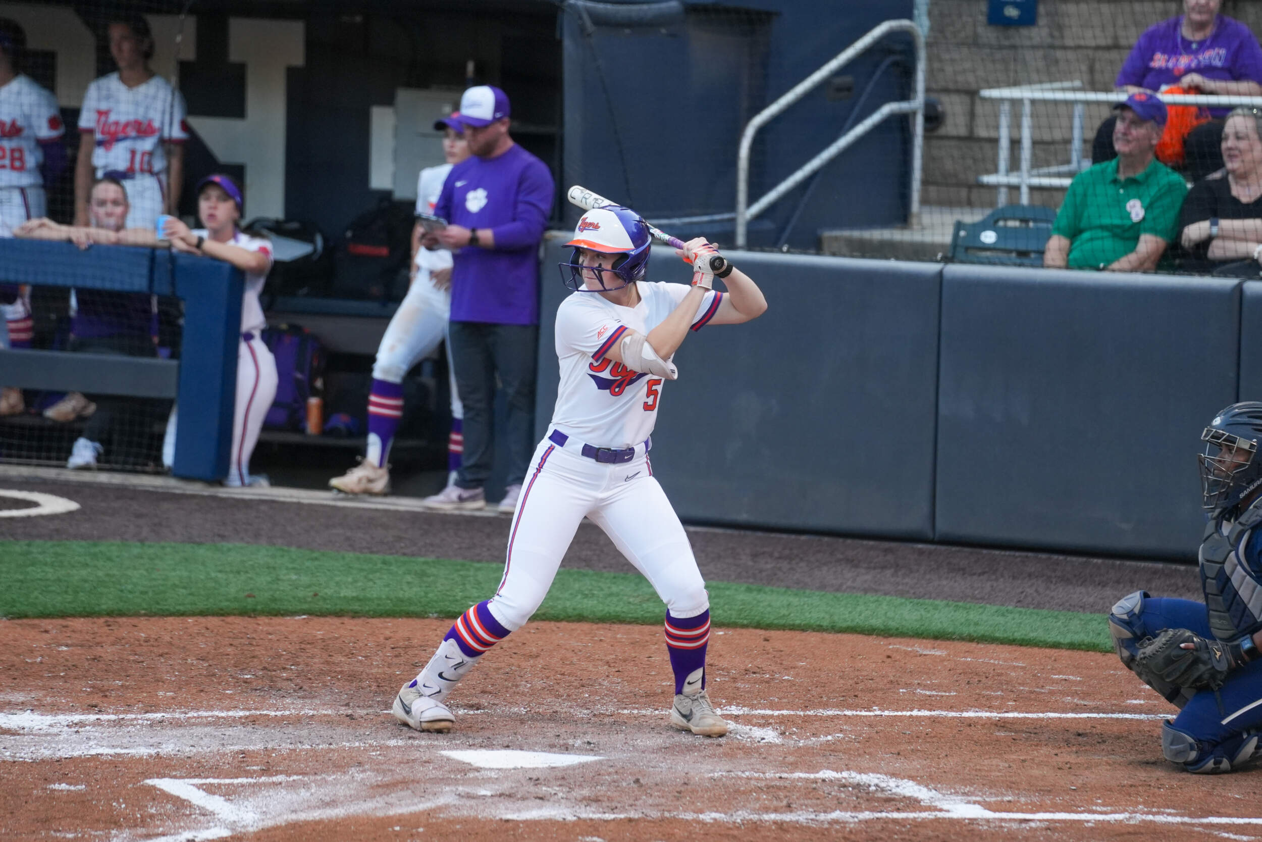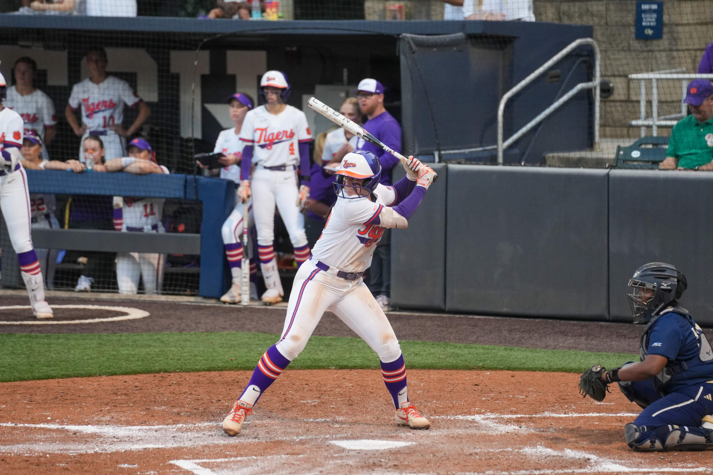Clemson’s offense continued to add runs in the first, scoring seven total runs throughout the inning. Collins drove the 10th home run of her freshman campaign out of the park for a three-run shot to extend the lead to 5-0. She is the fourth Tiger this season to hit double-digit home runs. Additional runs came off a full count walk to Moore with the bases loaded, and Brockenbrough came home off a wild pitch.