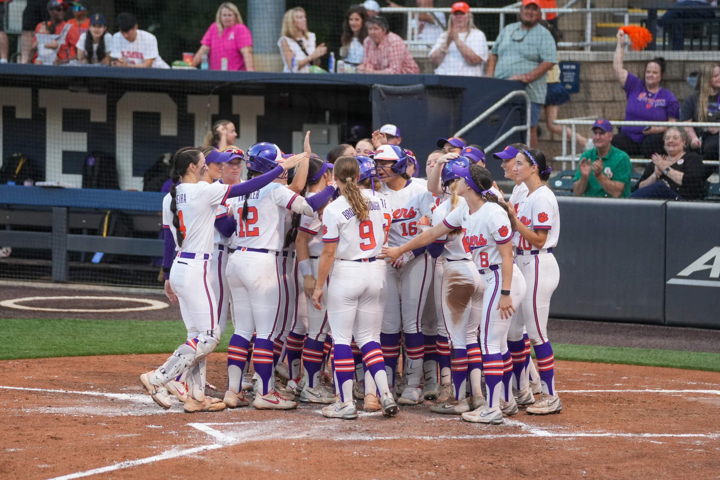 Clemson made it 8-0 with a single run scored by Kennedy Ariail in the top of the second before the Tigers added five more runs in the third. After Brockenbrough singled and advanced to third on a wild pitch and stolen base, she was brought home on a single by Brown. Moore followed with her second home run in as many days with an opposite field shot out of right. Clemson loaded the bases off a Cintron single and back-to-back walks from Vieira and Collins to allow Taylor Pipkins to pick up a two-RBI single down the third base line to make it 13-0.