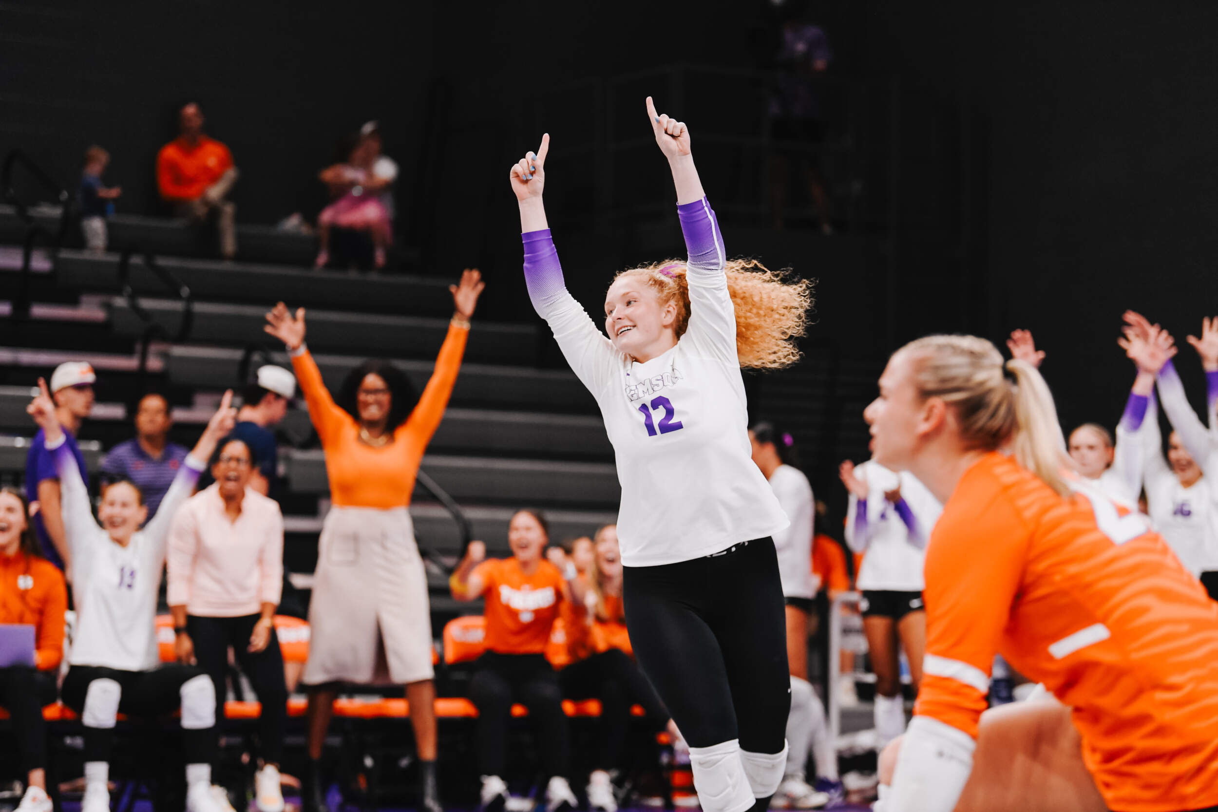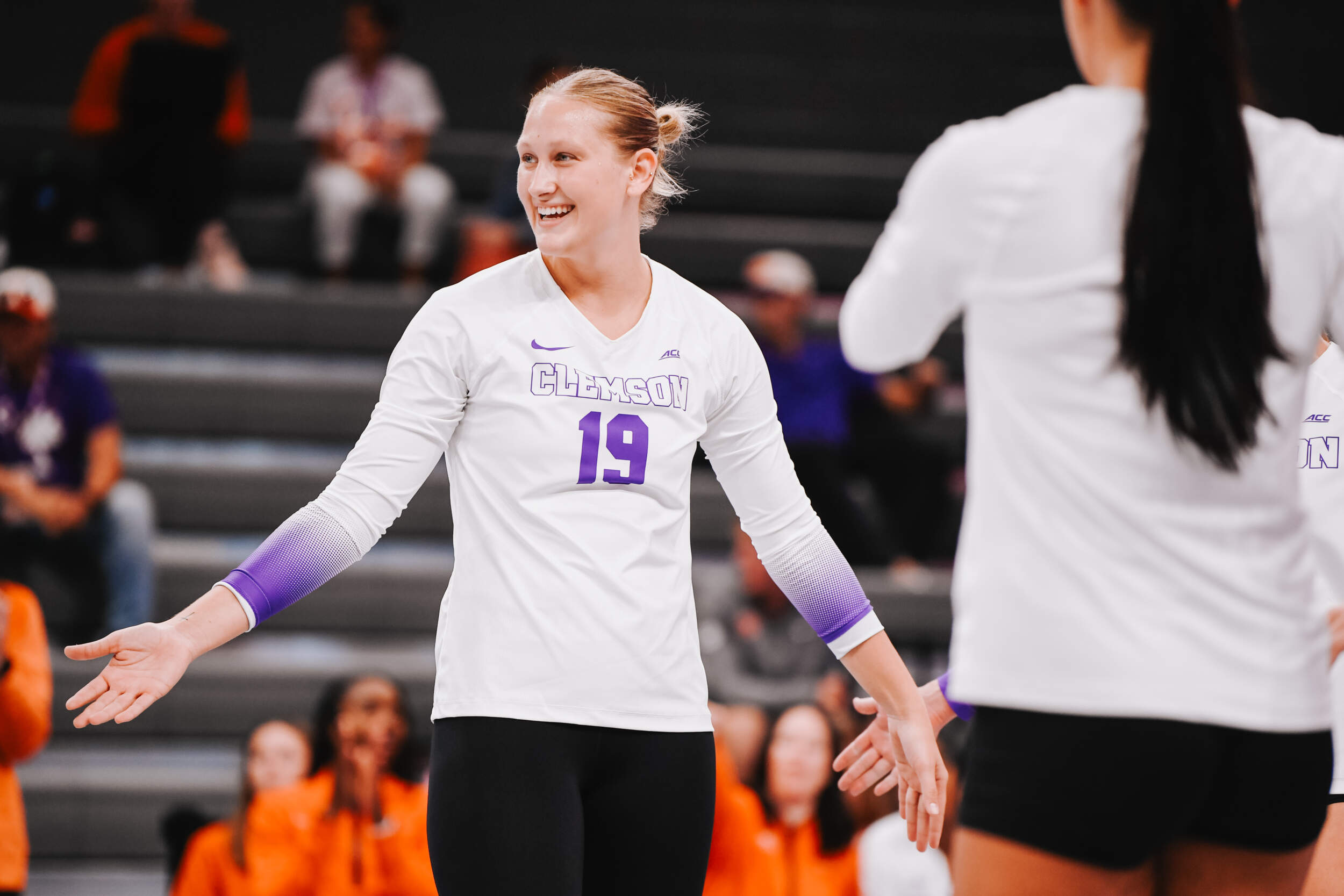 The Tigers jumped out to an early advantage in the opening set that was sparked by a joint block from Okur and Wagner followed shortly after by a solo block by Okur. Kate Hansen provided her own solo block and a service ace, while Wagner came up with multiple kills to keep Clemson’s pace to allow for a 25-21 set win. The Bulldogs even things with a set win in the second after taking a three-point lead late in the set.