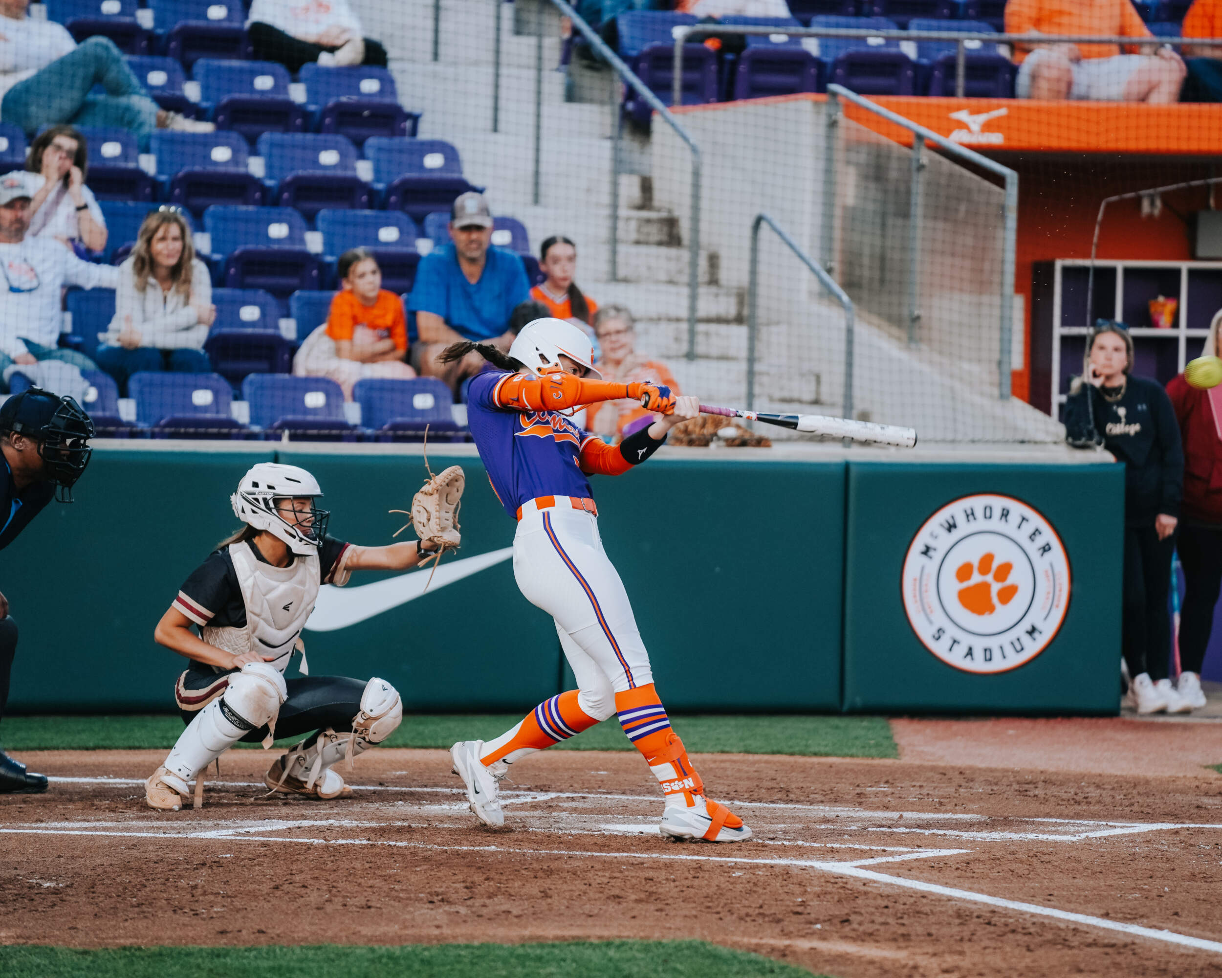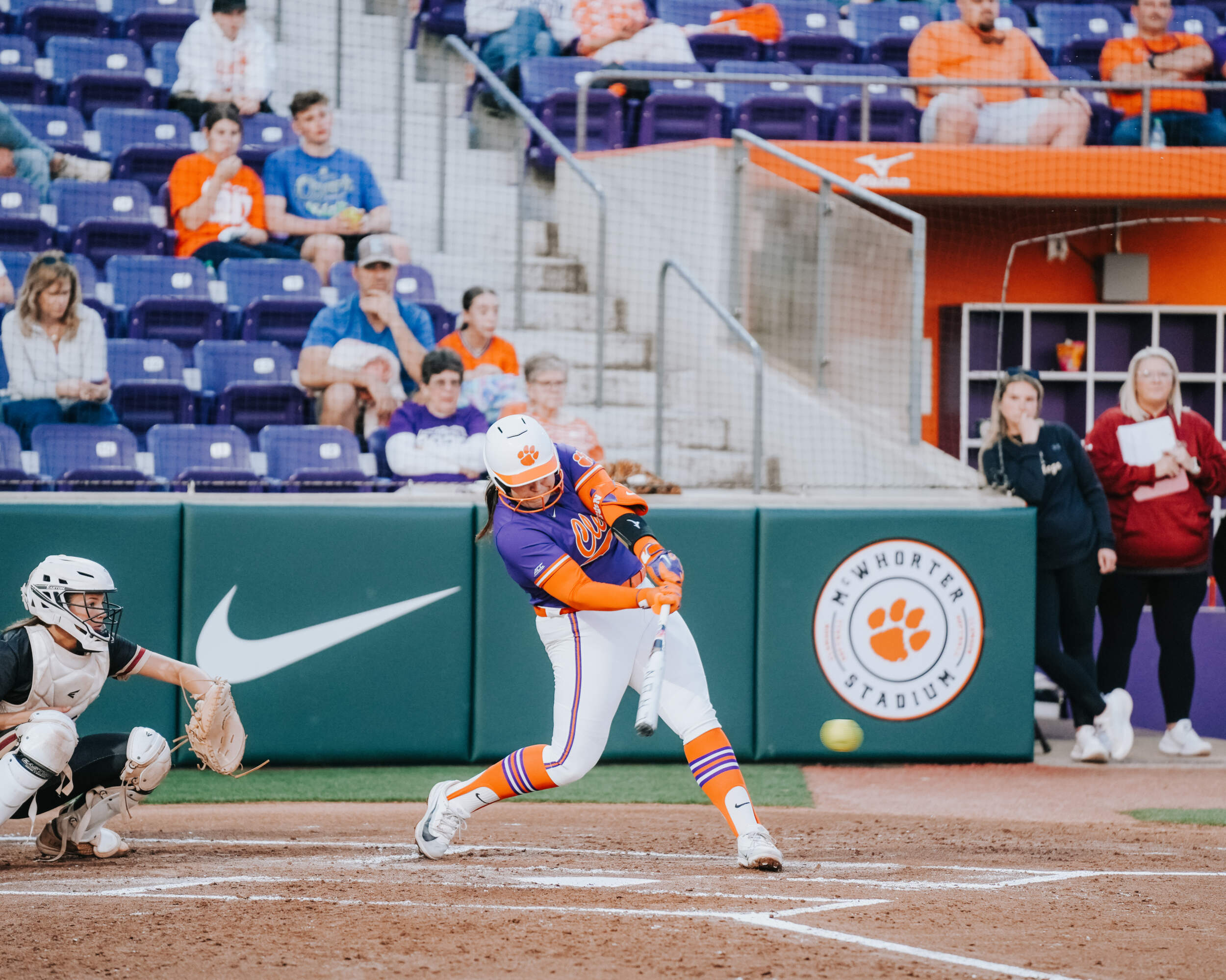 The Tigers struck first as Pavese reached on a fielder’s choice that plated Brockenbrough, who had walked and advanced to third on a wild pitch and passed ball. In the next at bat, Marian Collins, who finished 2-for-4 on the night, hit a double into right center that scored Pavese from first to double Clemson’s lead. Collins advanced to third on a groundout, and freshman Sarah Breaux rounded out the scoring for the inning with an RBI that returned Collins home to make it 3-0.