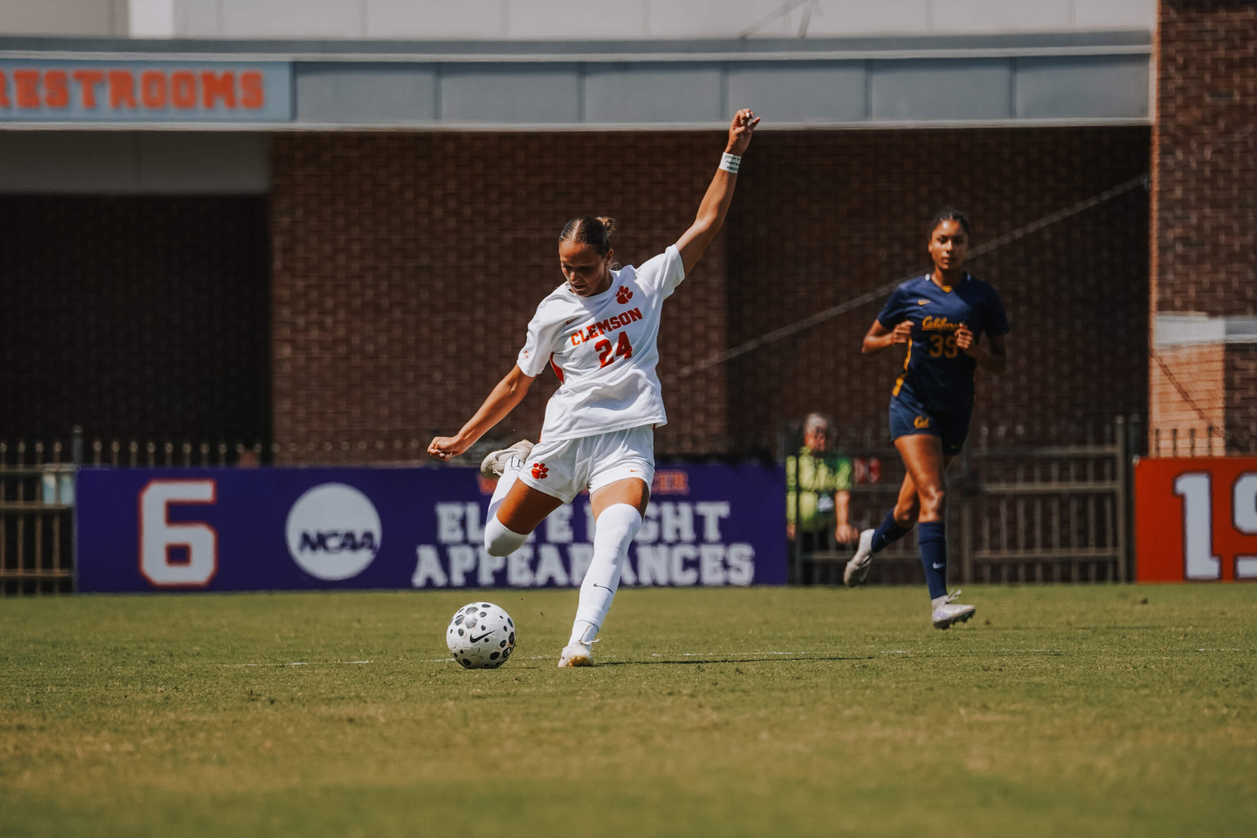CLEMSON, S.C. – The Clemson University women’s soccer team (3-1-4, 0-0-2) played California Sunday afternoon at Historic Riggs Field for the first time in program history, resulting in a 2-2 draw on Senior day. This is the second consecutive match where Clemson was down 2-0 before generating two second-half goals with the first happening against No. 3 Stanford this past Thursday.