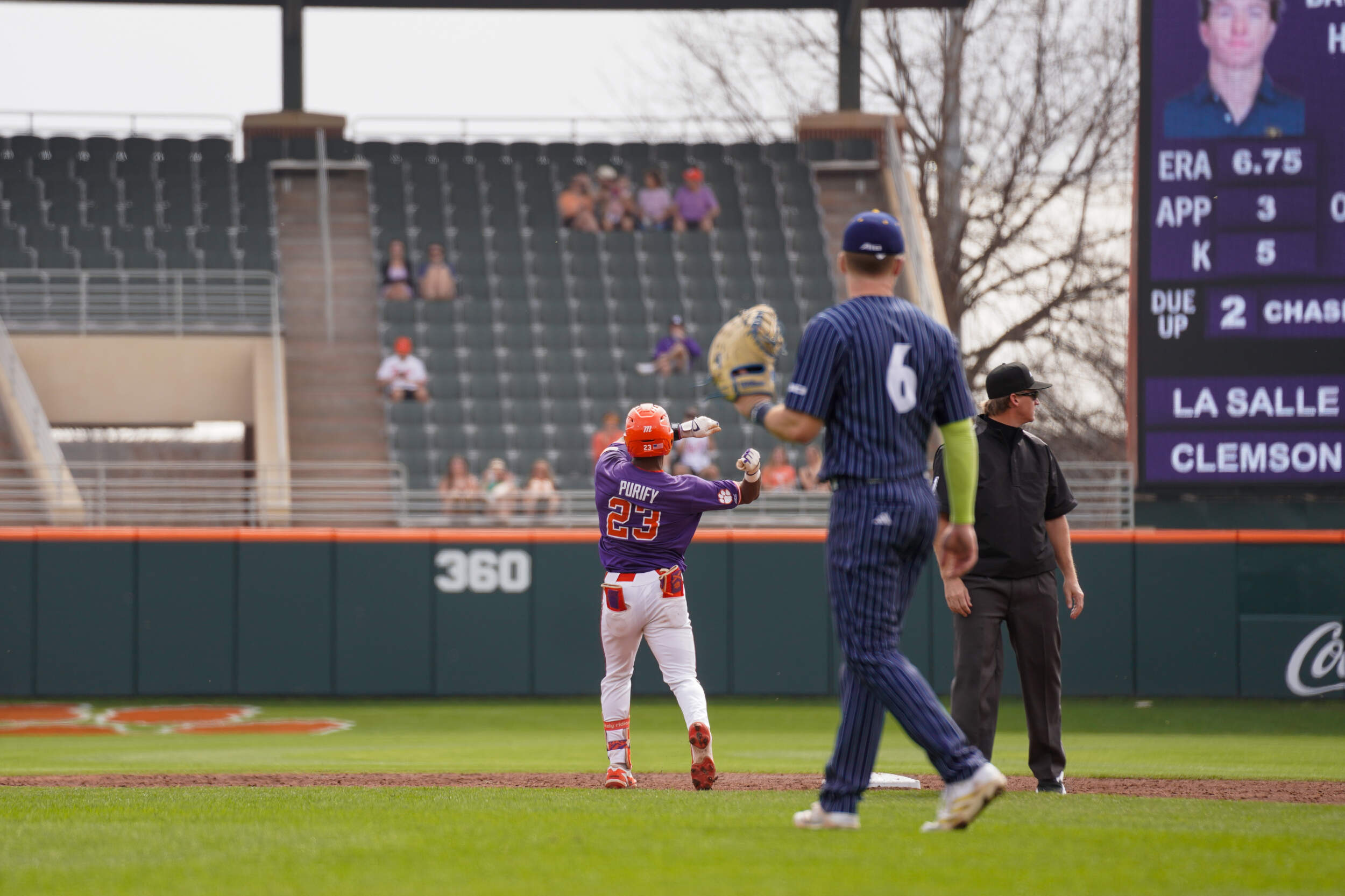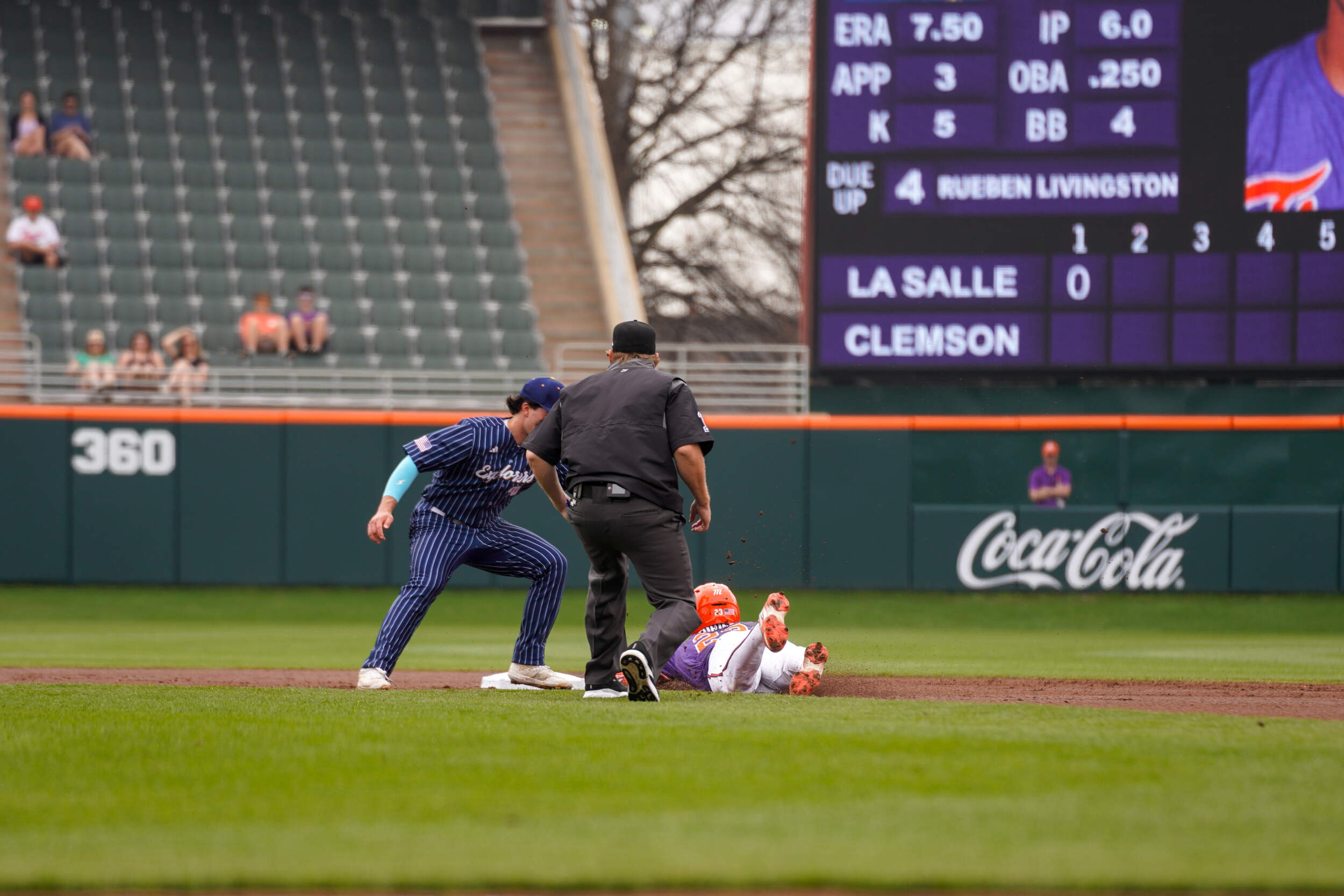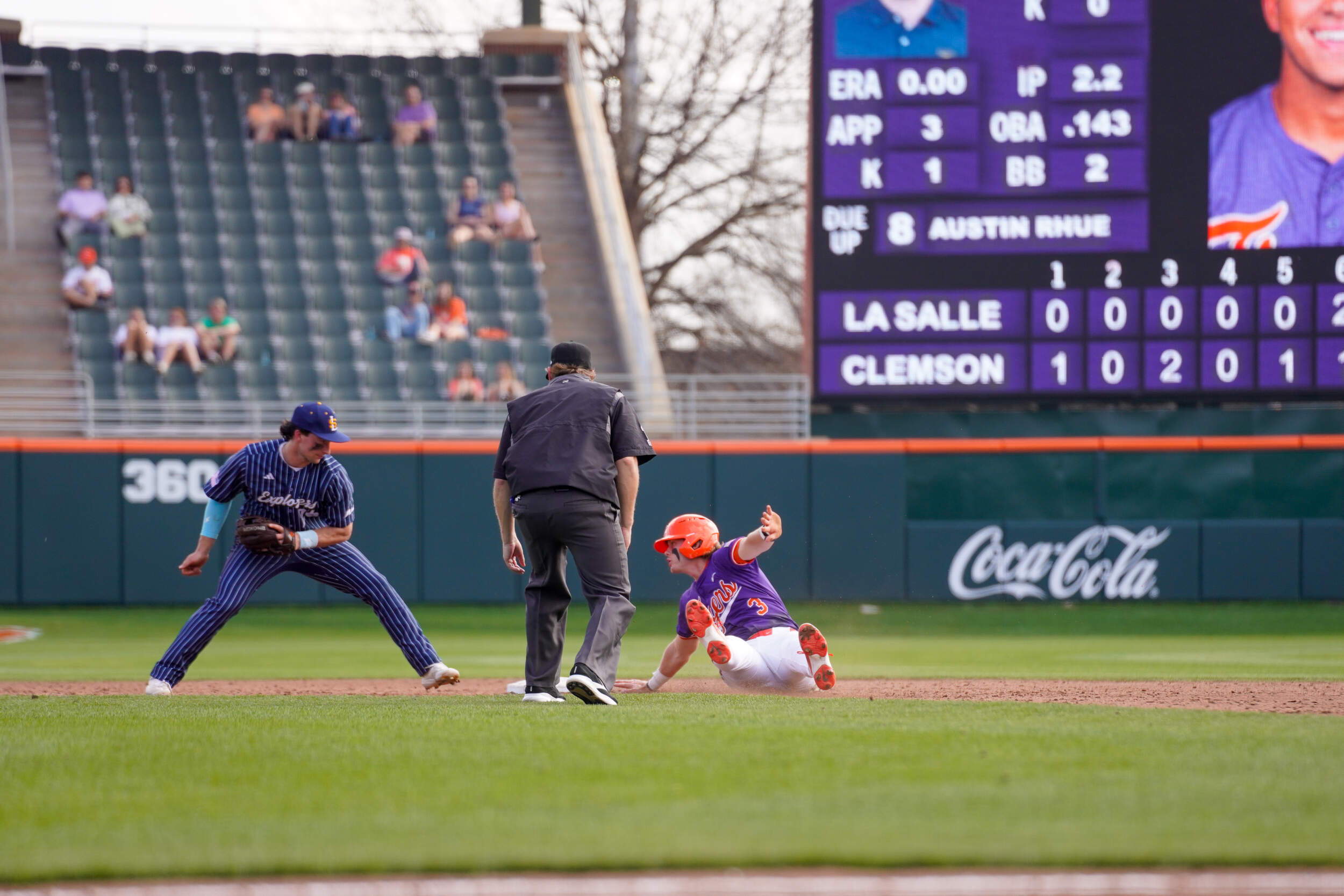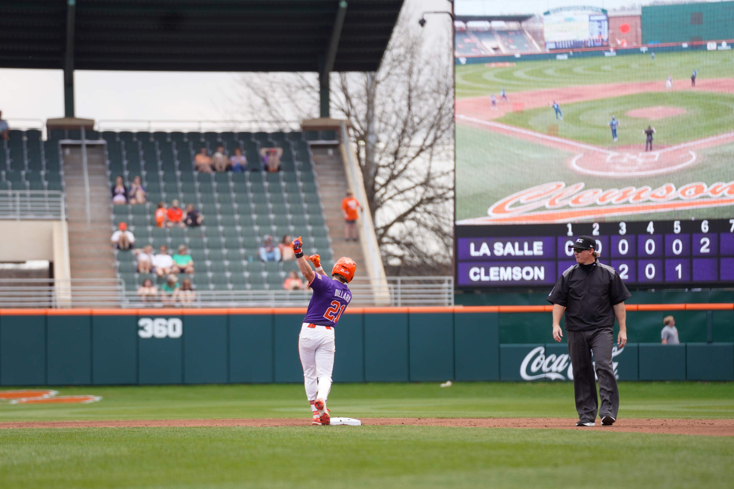Jay Dillard responded with a two-out double to score a run in the bottom of the sixth inning. In the top of the eighth inning, the Explorers plated two runs after an error to narrow Clemson’s lead to 5-4. Dillard answered with a sacrifice fly in the bottom of the eighth inning to double the Tiger lead.
