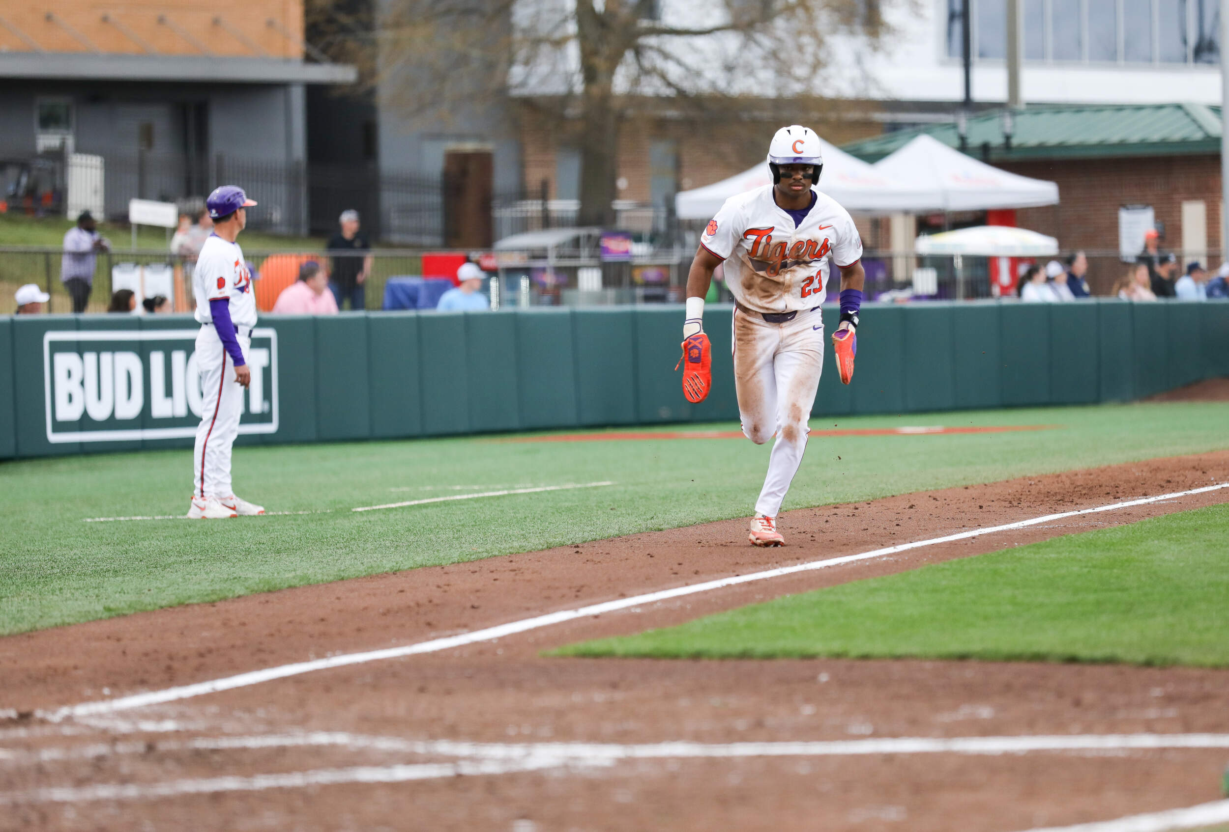 Chase Swain belted a solo homer in the top of the first inning, then Clemson scored two runs in the bottom of the first inning, capped by Tyler Lichtenberger’s two-out, run-scoring single. Austin Rhue responded with a two-run homer in the top of the second inning, then the Tigers scored two runs to regain the lead, capped by Tryston McCladdie’s two-out, run-scoring single, in the bottom of the second inning.