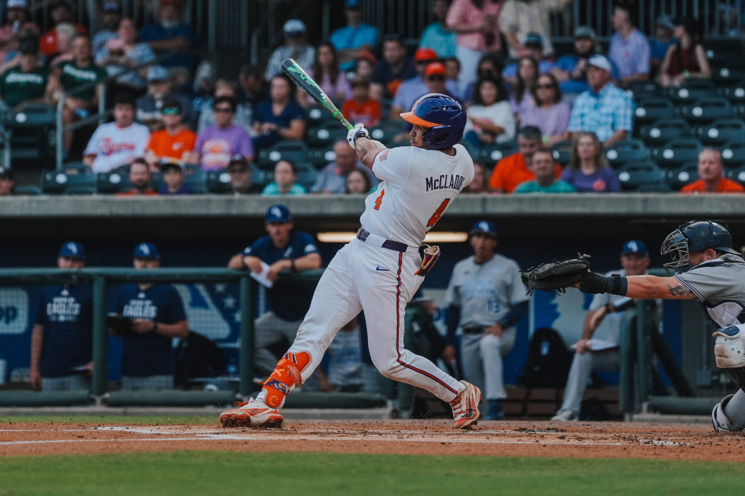 NORTH AUGUSTA, S.C. – Georgia Southern scored six two-out runs in the second inning, capped by Sean White’s grand slam, in its 6-1 victory over No. 8 Clemson at SRP Park on Tuesday night. The Eagles improved to 5-11, while the Tigers, who saw their seven-game winning streak snapped, fell to 15-2.