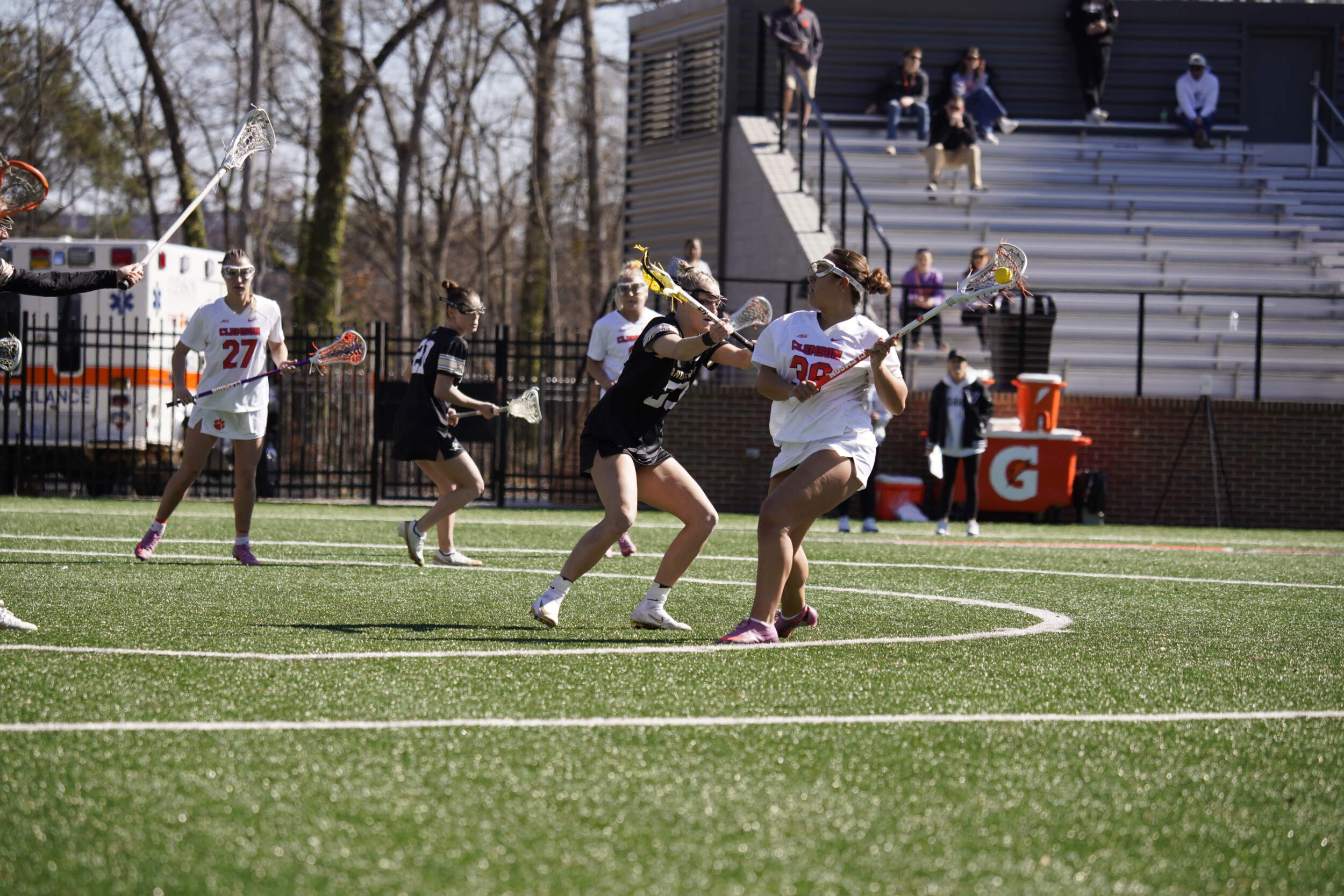 After Shurtleff controlled the opening draw, Mooney buried Clemson’s first goal of the season just 37 seconds in off a feed from Spallina. The Tigers controlled possession early, rolling through a 4–0 run that featured two goals from Goldstein and a man‑up finish by MacLeod.