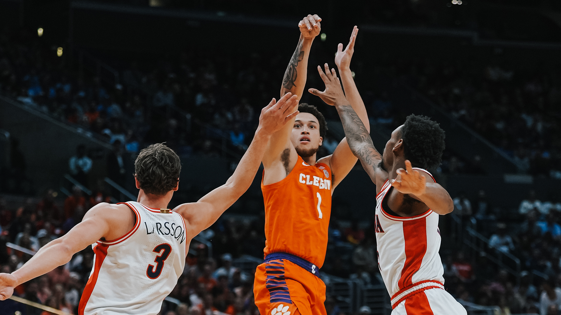 LOS ANGELES – Chase Hunter’s (Atlanta, Ga./Westlake) three-point play with 25 seconds remaining put the Tigers up five and helped hold off a late run by No. 2 seed Arizona (27-10), as No. 6 seed Clemson prevailed 77-72 inside the Crypto.com Arena to advance to the second NCAA Elite Eight in program history. The Tigers (24-11) are the first to advance to the West Regional final. Clemson led for 37:02 in the game and trailed for just 20 seconds, while the game was tied twice.