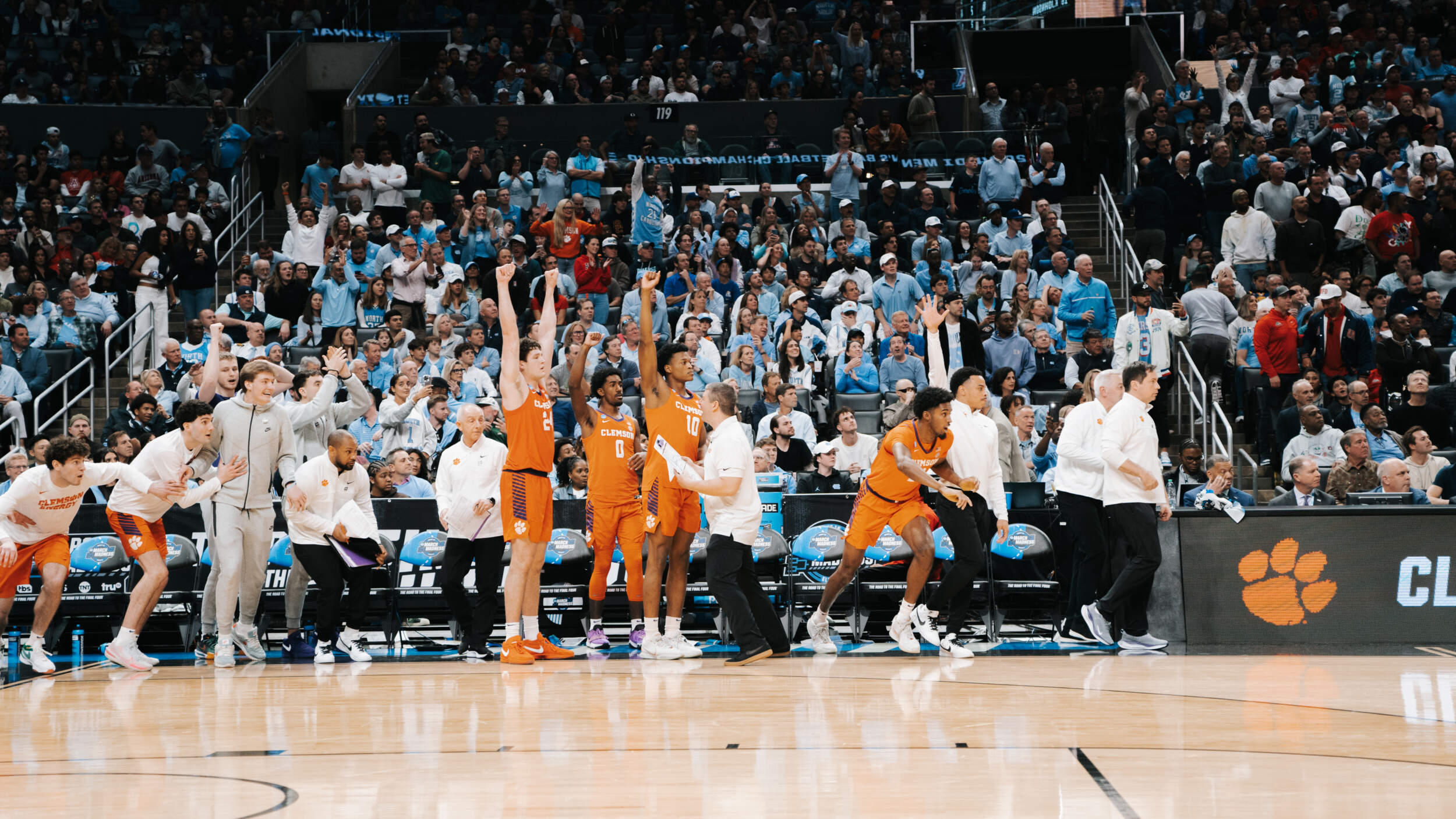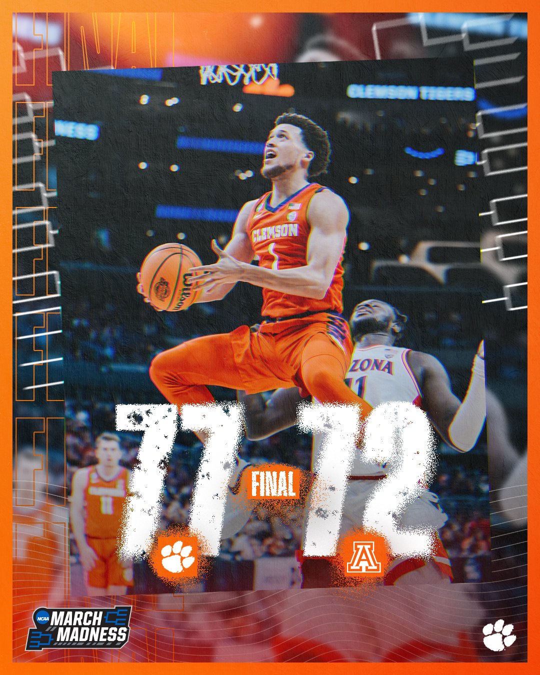 The win, Clemson’s first over Arizona in history, puts the Tigers into the Elite Eight for the first time since the 1980 NCAA Tournament. The Tigers will face the winner of North Carolina/Alabama on Saturday inside Crypto.com Arena.