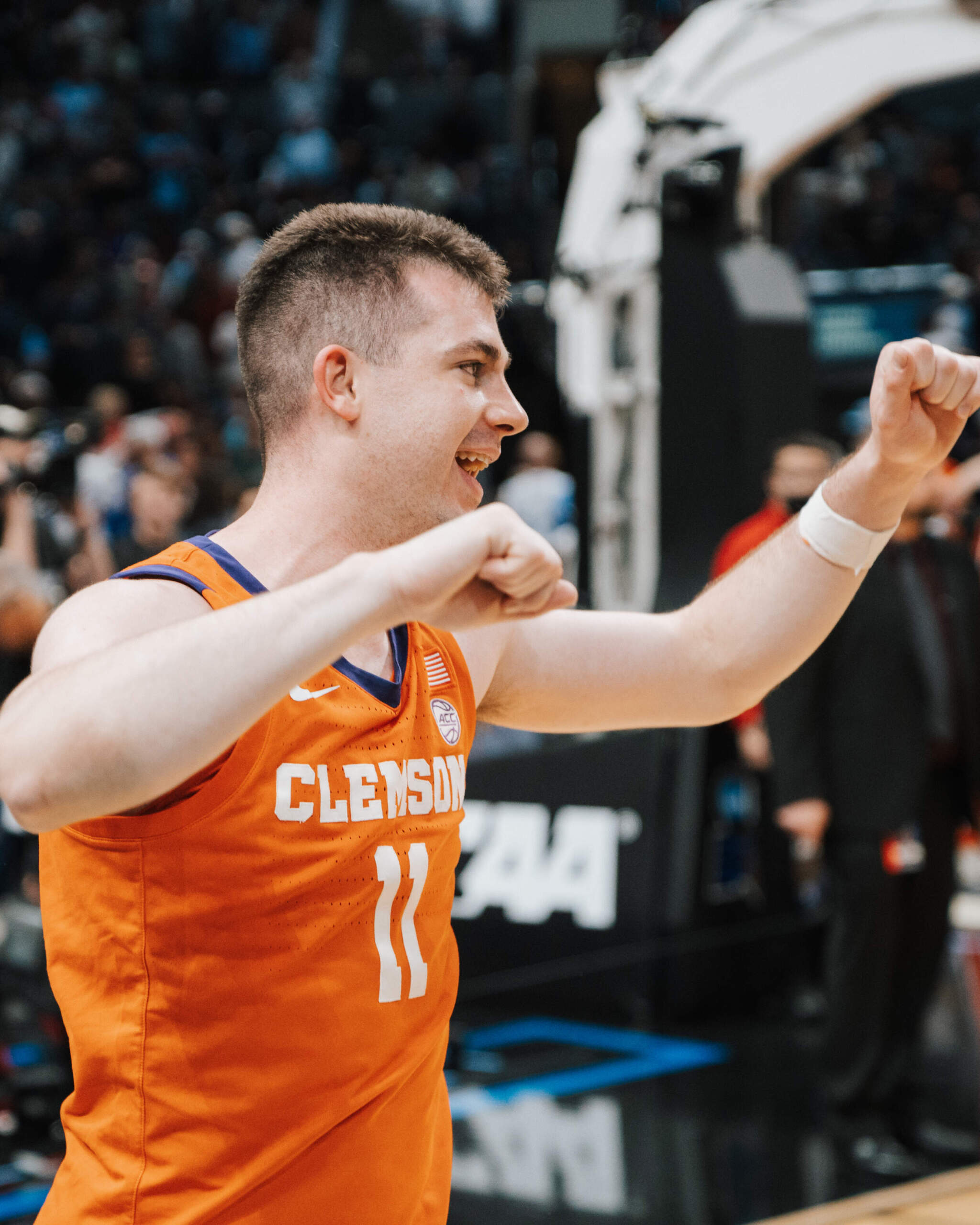 After a free throw by Caleb Love tied the game at 43 with 16:33 to go, Clemson held the Wildcats without a field goal for two minutes, but couldn’t stretch the lead, as Arizona grabbed a one-point advantage with 14:32 to go. Jack Clark (Cheltenham, Pa./Cheltenham) drained his only field goal of the second half, a three-pointer just 20 seconds later, to put the Tigers’ back in front and Clemson would never trail again.