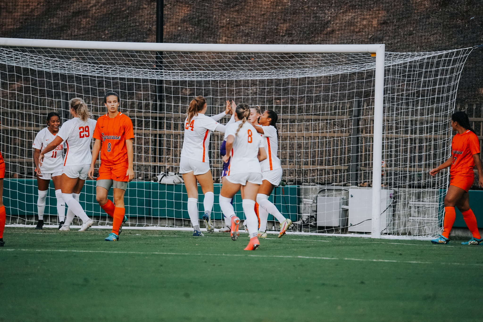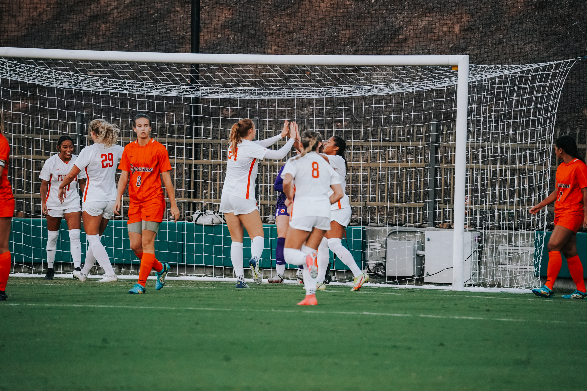 CLEMSON, S.C. – Five different Tigers scored to provide a balanced offense as the No. 8 Clemson women’s soccer team defeated Syracuse, 5-1, on Saturday evening at Historic Riggs Field. Following the win, Clemson improves to 9-1-2 (4-1 ACC), while Syracuse drops to 2-10-1 (0-5 ACC) as the Tigers take an 8-0-2 advantage in the all-time series with the Orange.