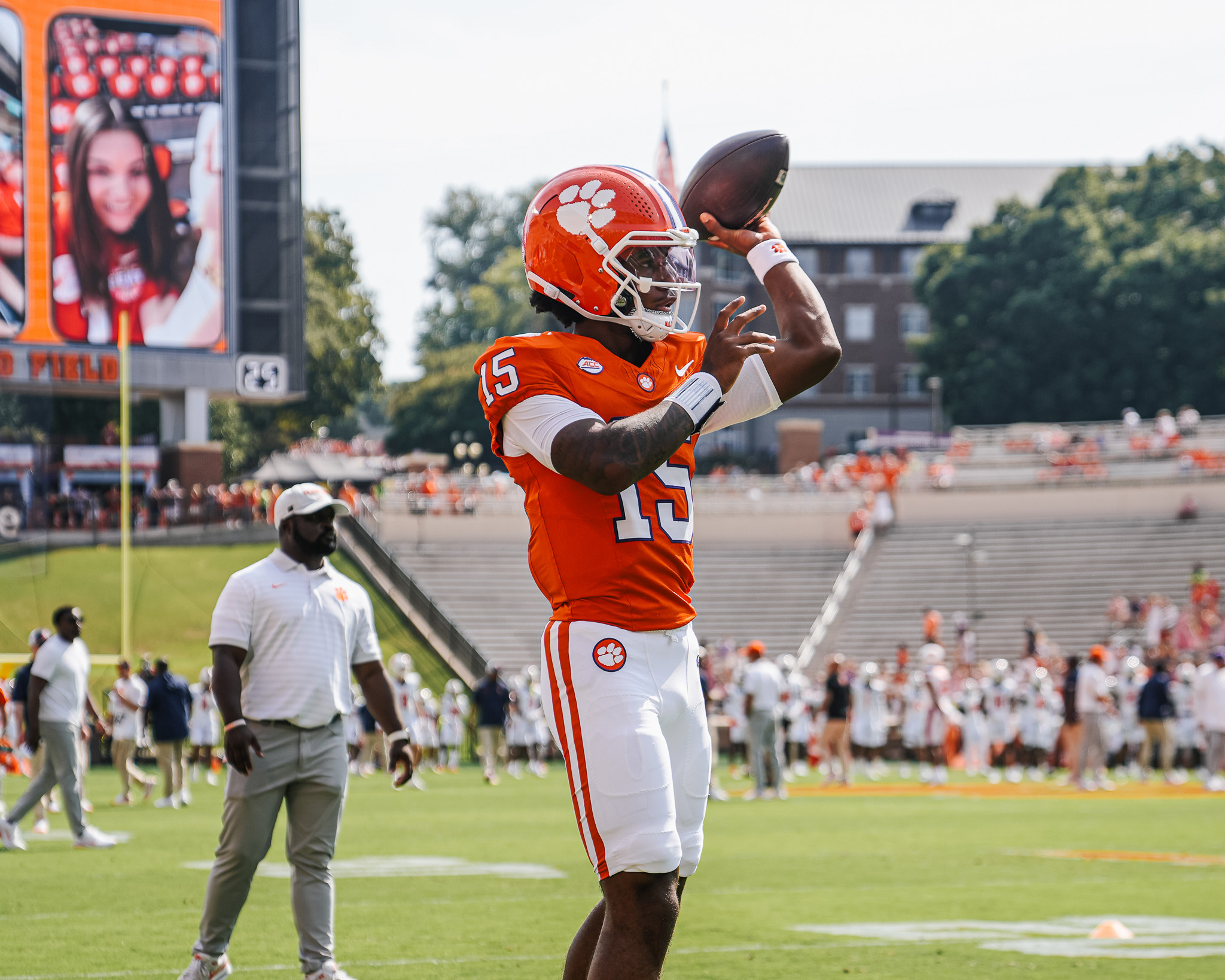 Electric dual-threat quarterback from Florida who played 11 offensive snaps over two games while redshirting in 2025, completing 4-of-4 passes for 22 yards with a touchdown in addition to rushing for 108 yards with a touchdown on seven carries ... averaged 17.7 yards per carry against Furman in 2025, the highest by a Clemson quarterback in a game with at least five attempts since Bobby Gage’s 30.3-yard average against Presbyterian in 1947.