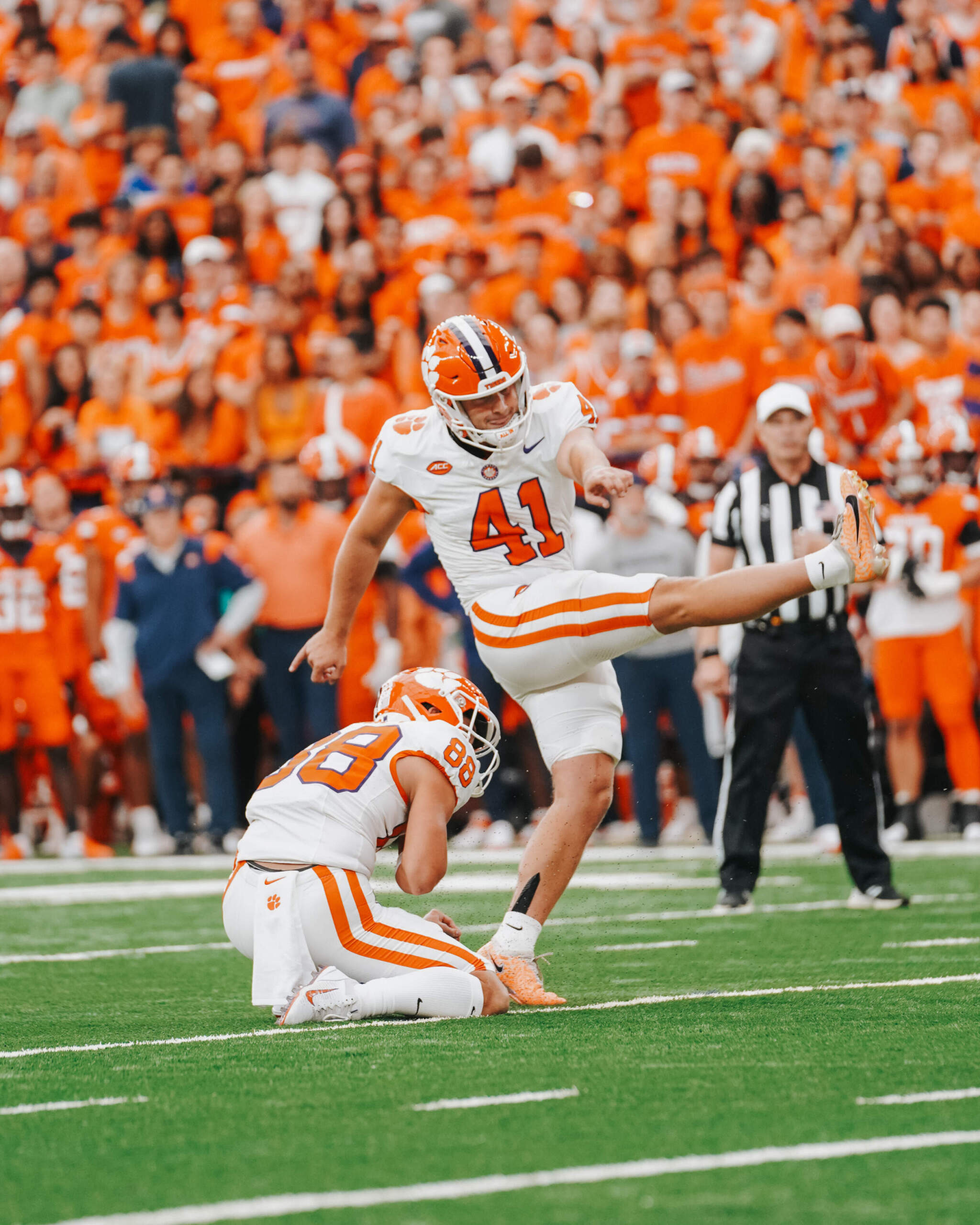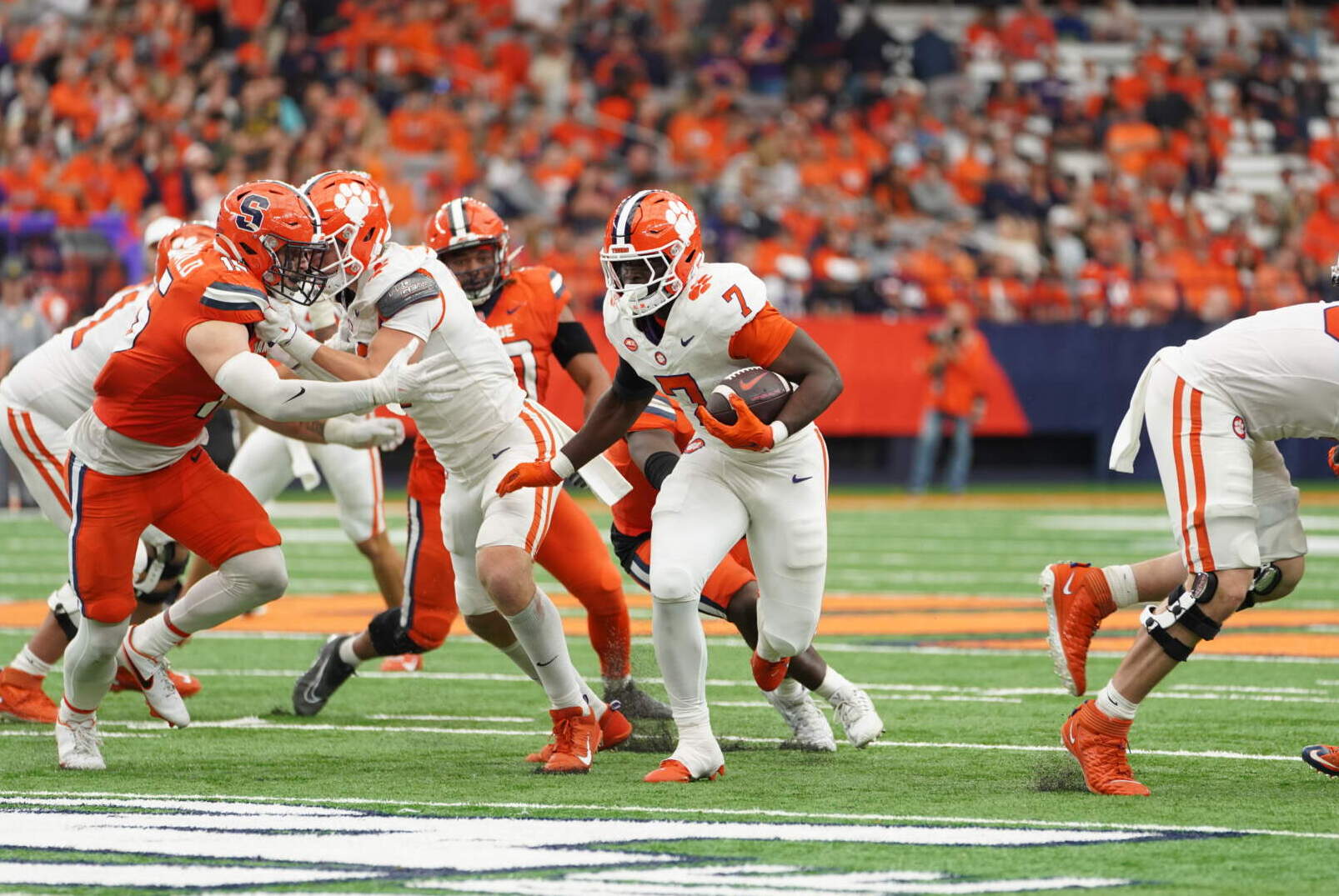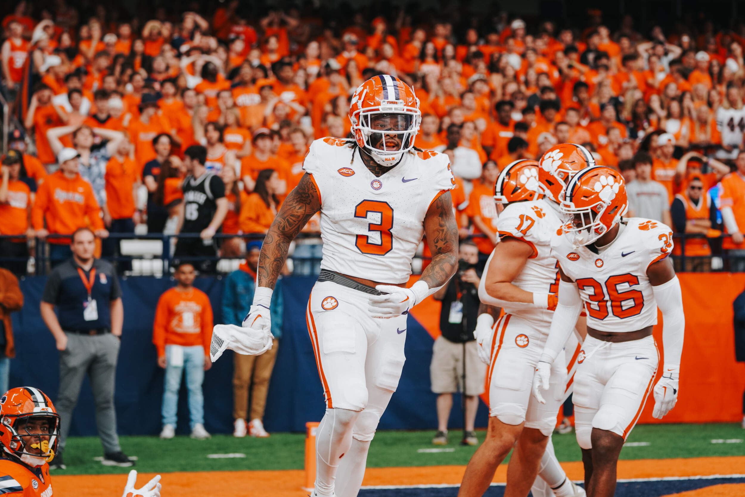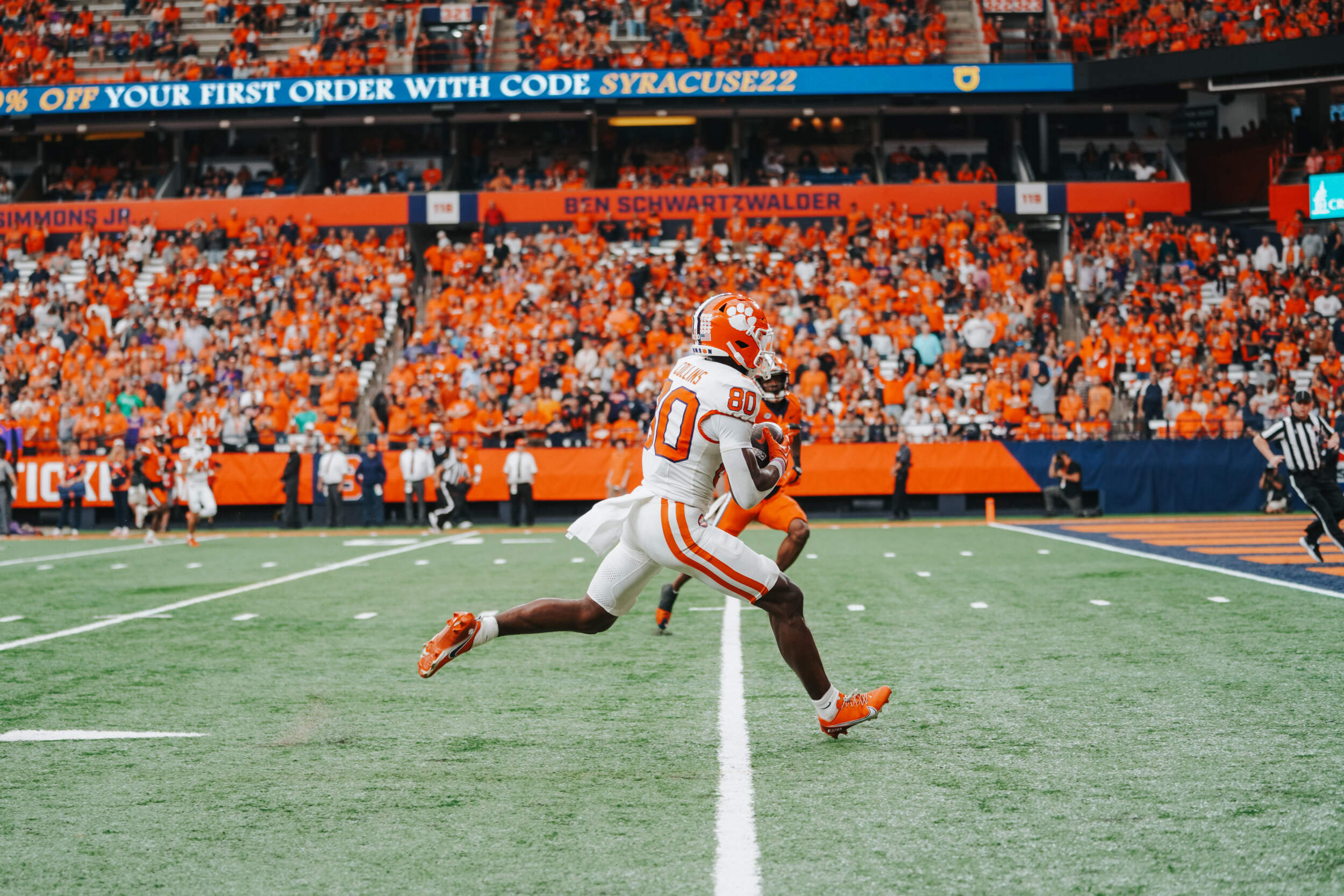 The defense held the Orange to a 57-yard field goal attempt on the next drive, which fell short. Facing a third-and-10, Klubnik scrambled, picking up 14 yards to the Syracuse 47-yard line. On the next play, he found a wide-open Beaux Collins with a deep ball on the numbers for a 47-yard score to put the Tigers ahead, 21-7, with 2:23 to play in the half. For Collins, it was his 10th career score and his fourth of 40 yards or more.