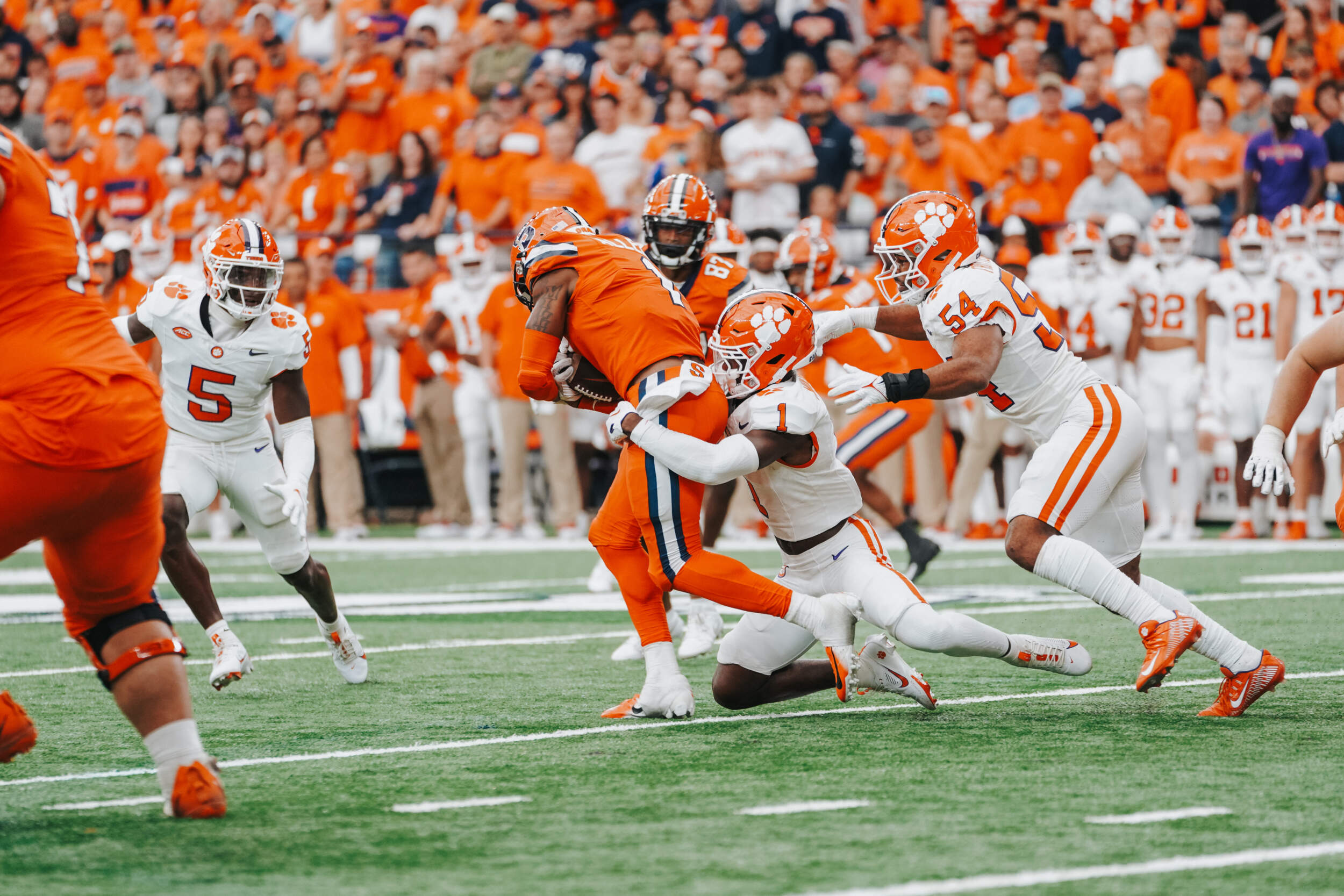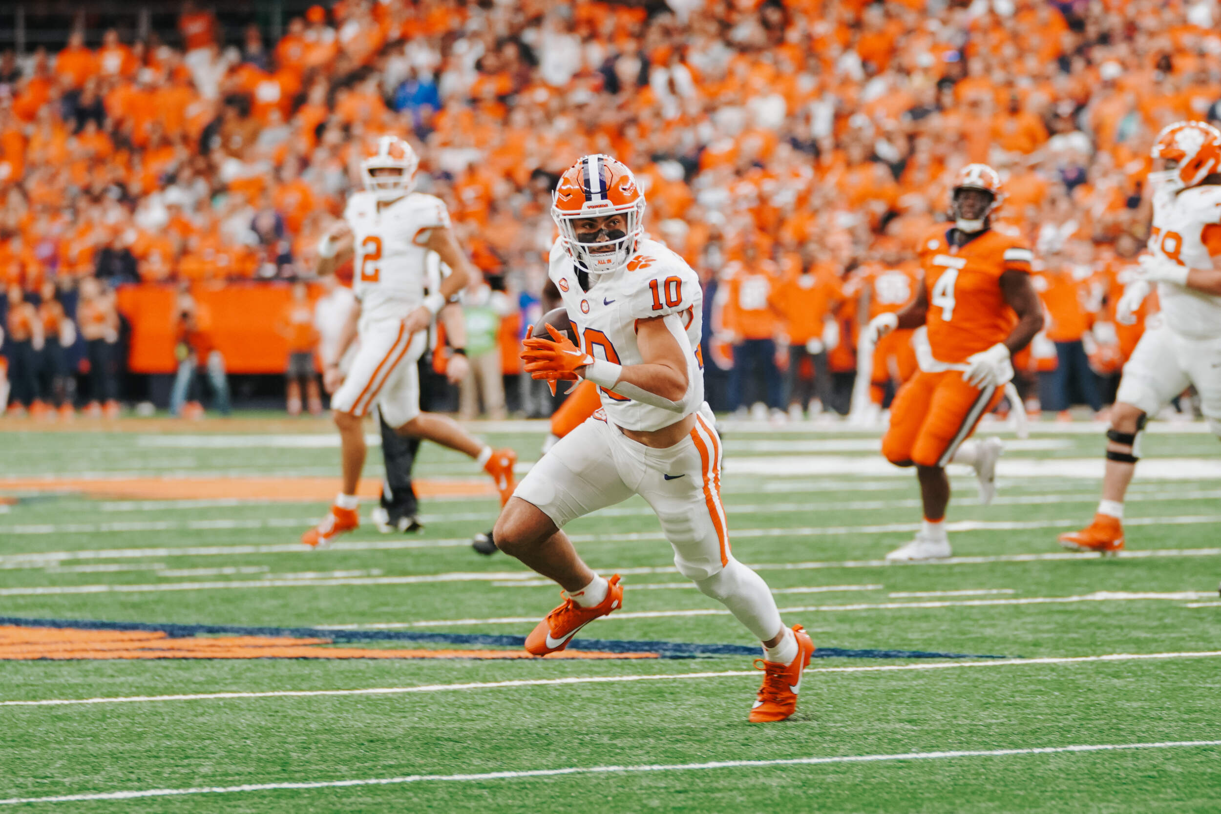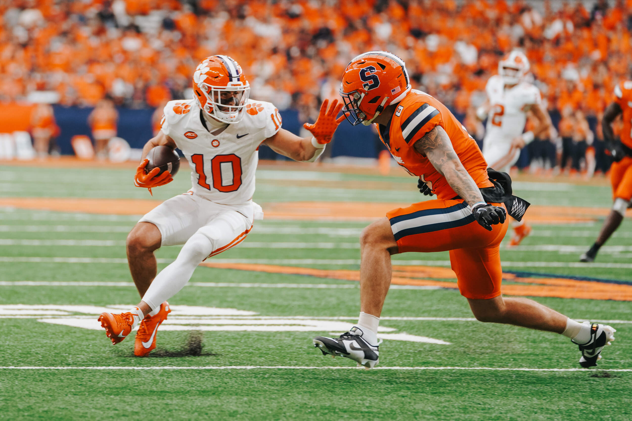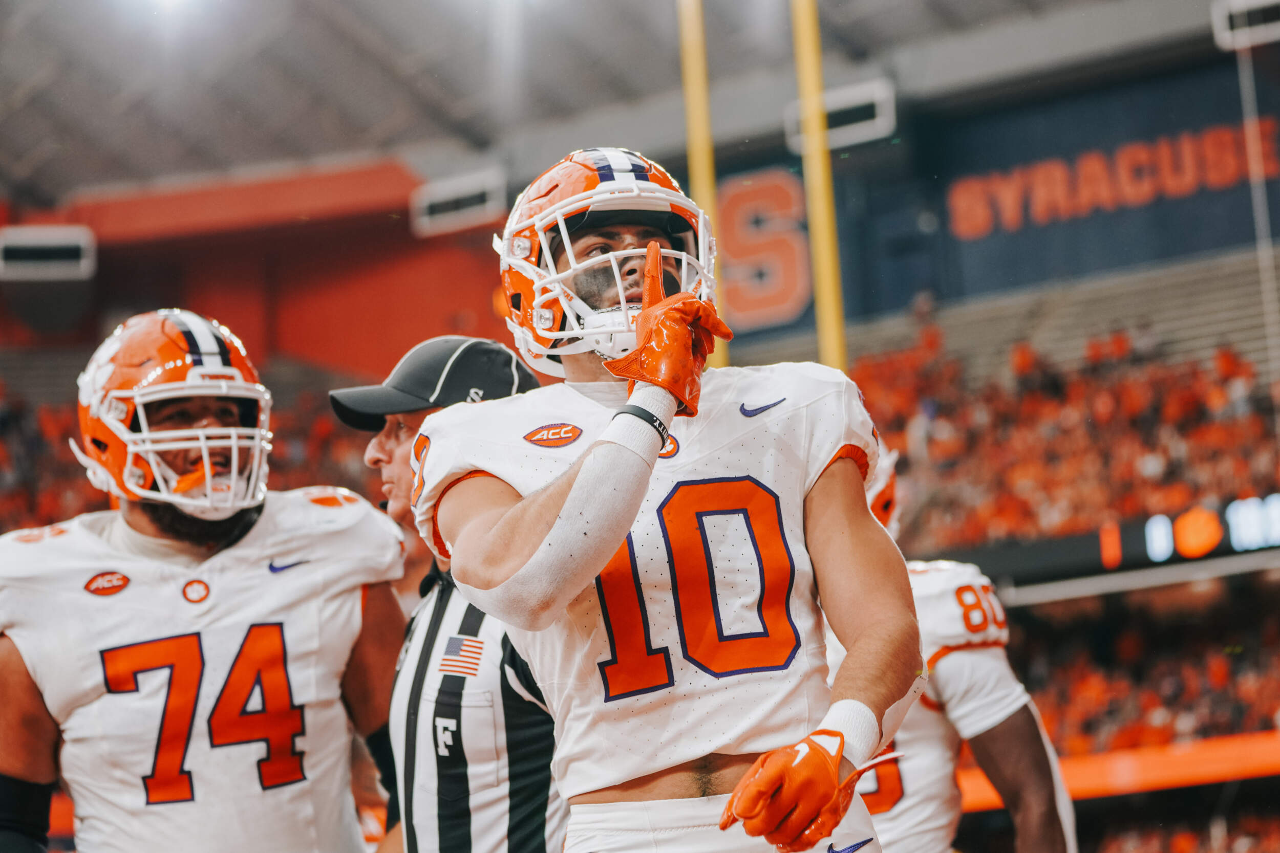 Two drives later, Clemson again threatened to score, mounting a 14-play drive including three third-and-long conversions to get inside the 10-yard line. However, Syracuse was able to hold on 4th-and-2 from the five, sacking Klubnik to end the threat.