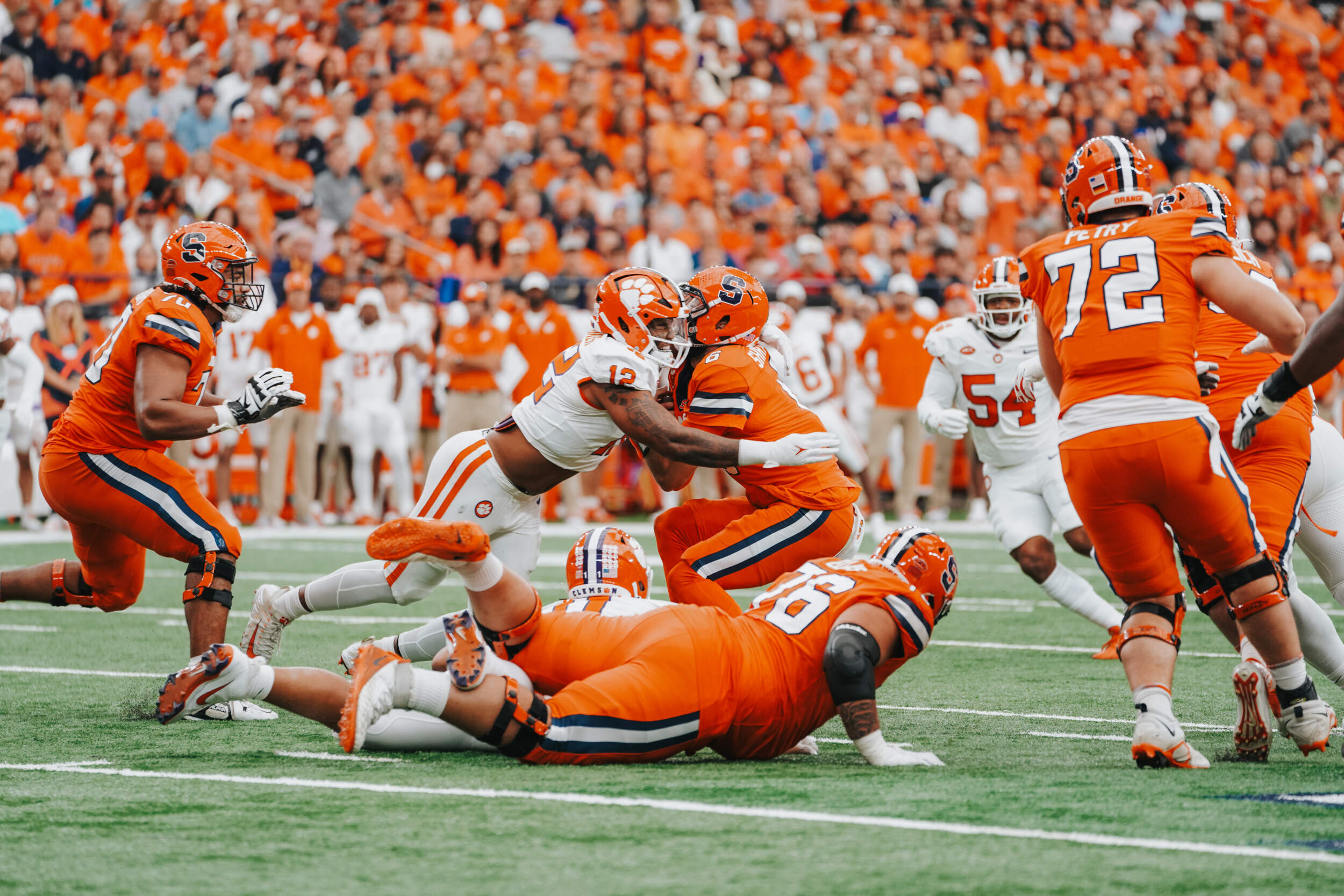 Defensively, Clemson recorded a season-high five sacks and held Syracuse’s offense, which entered the week in the Top 10 nationally in points per game and yards per game, to 14 points and 286 yards of offense. On its first sack of the game, Clemson became the first program in the country to record 500 sacks since 2012.